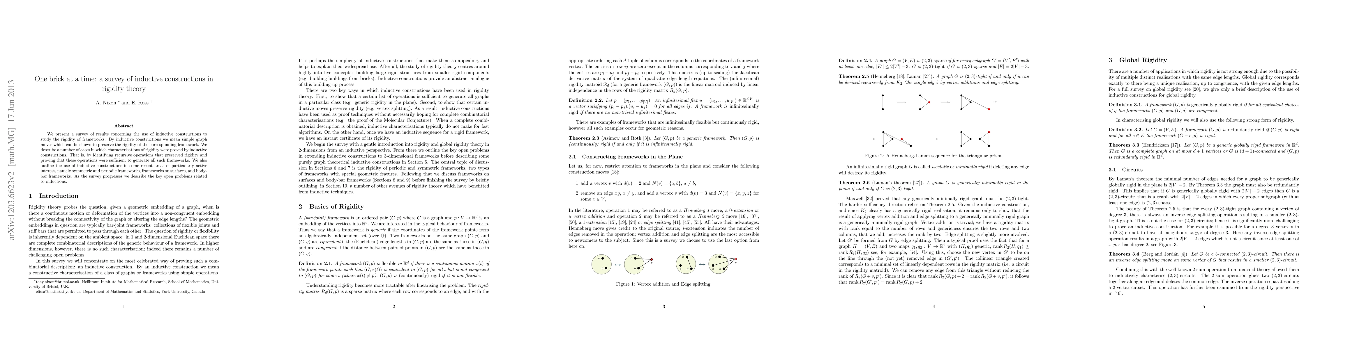 This paper surveys the application of inductive constructions in rigidity theory to demonstrate the preservation of framework rigidity through simple graph moves. It highlights recent advancements in symmetric, periodic, surface-based, and body-bar frameworks, while also identifying key open problems in this area.