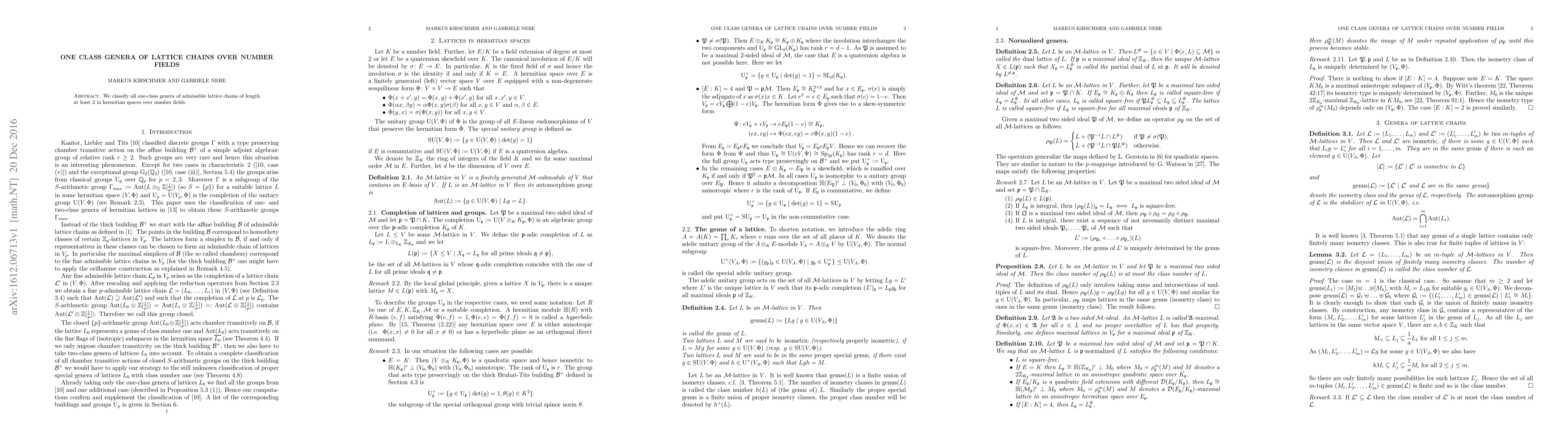 We classify all one-class genera of admissible lattice chains of length at least 2 in hermitian spaces over number fields.