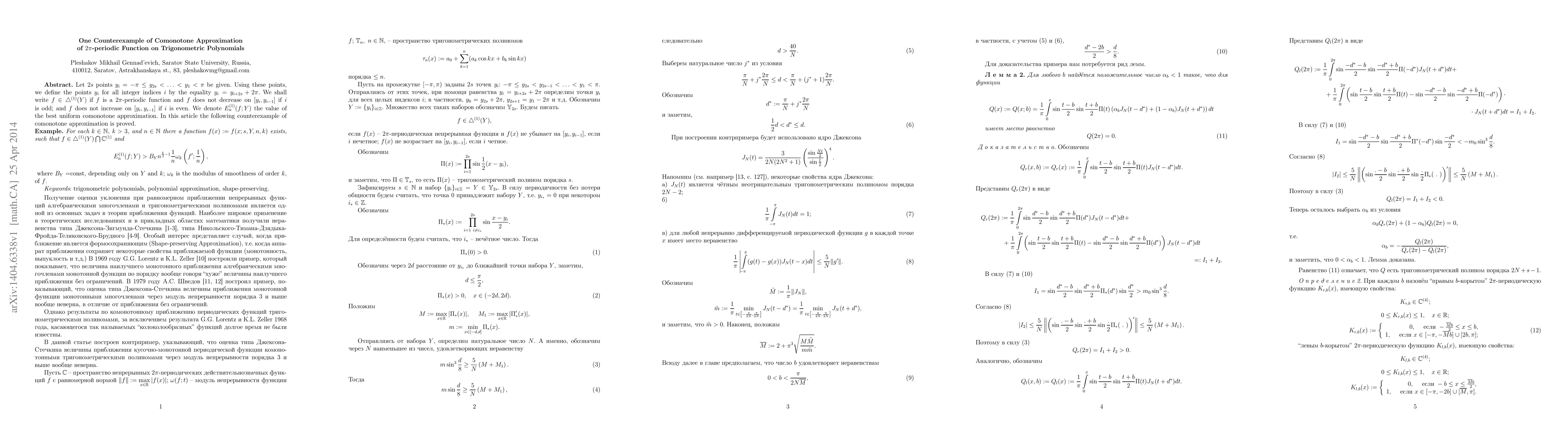 Researchers found a counterexample to the common monotonic approximation of 2π-periodic functions on trigonometric polynomials, showing that some functions can be approximated with an error rate greater than previously thought.