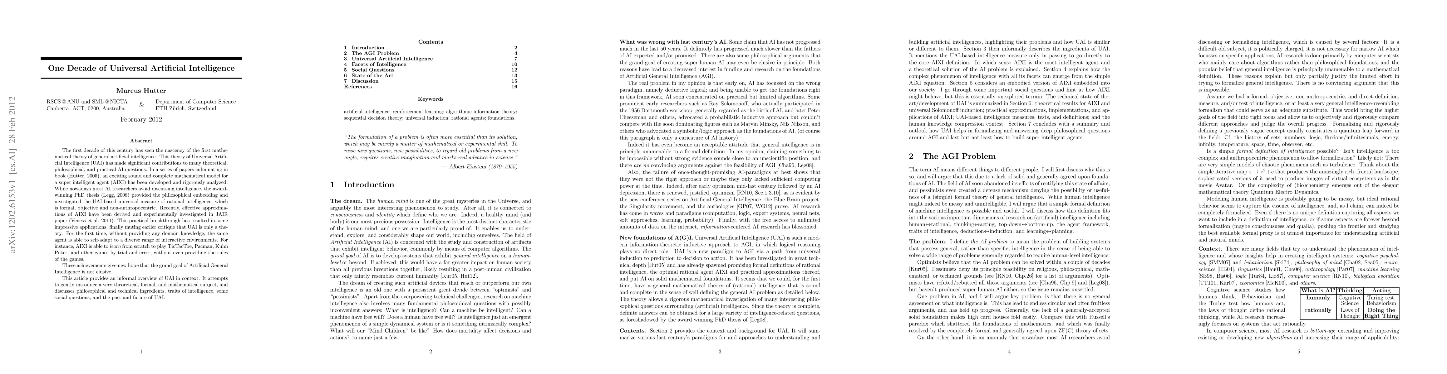 The first decade of this century has seen the nascency of the first mathematical theory of general artificial intelligence. This theory of Universal Artificial Intelligence (UAI) has made significant contributions to many theoretical, philosophical, and practical AI questions. In a series of papers culminating in book (Hutter, 2005), an exciting sound and complete mathematical model for a super intelligent agent (AIXI) has been developed and rigorously analyzed. While nowadays most AI researchers avoid discussing intelligence, the award-winning PhD thesis (Legg, 2008) provided the philosophical embedding and investigated the UAI-based universal measure of rational intelligence, which is formal, objective and non-anthropocentric. Recently, effective approximations of AIXI have been derived and experimentally investigated in JAIR paper (Veness et al. 2011). This practical breakthrough has resulted in some impressive applications, finally muting earlier critique that UAI is only a theory. For the first time, without providing any domain knowledge, the same agent is able to self-adapt to a diverse range of interactive environments. For instance, AIXI is able to learn from scratch to play TicTacToe, Pacman, Kuhn Poker, and other games by trial and error, without even providing the rules of the games. These achievements give new hope that the grand goal of Artificial General Intelligence is not elusive. This article provides an informal overview of UAI in context. It attempts to gently introduce a very theoretical, formal, and mathematical subject, and discusses philosophical and technical ingredients, traits of intelligence, some social questions, and the past and future of UAI.