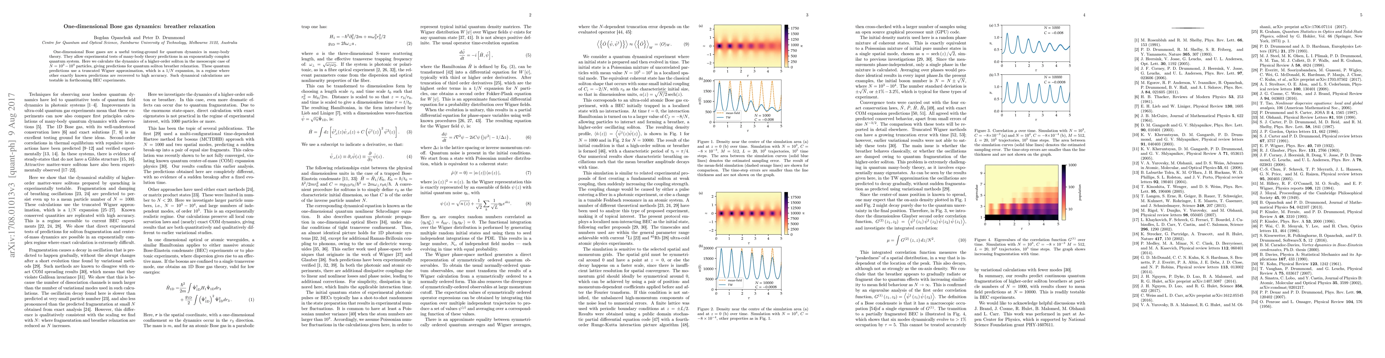 Researchers calculated the dynamics of a higher-order soliton in a 1D Bose gas with 10^3-10^4 particles, predicting quantum breather relaxation using a truncated Wigner approximation.