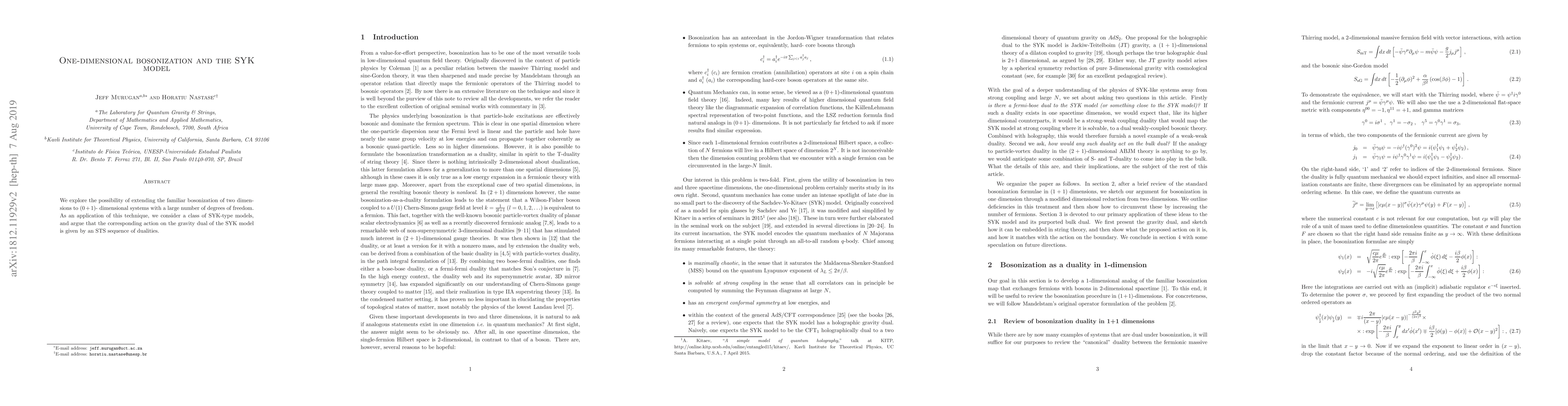 We explore the possibility of extending the familiar bosonization of two dimensions to $(0+1)$- dimensional systems with a large number of degrees of freedom. As an application of this technique, we consider a class of SYK-type models, and argue that the corresponding action on the gravity dual of the SYK model is given by an STS sequence of dualities.