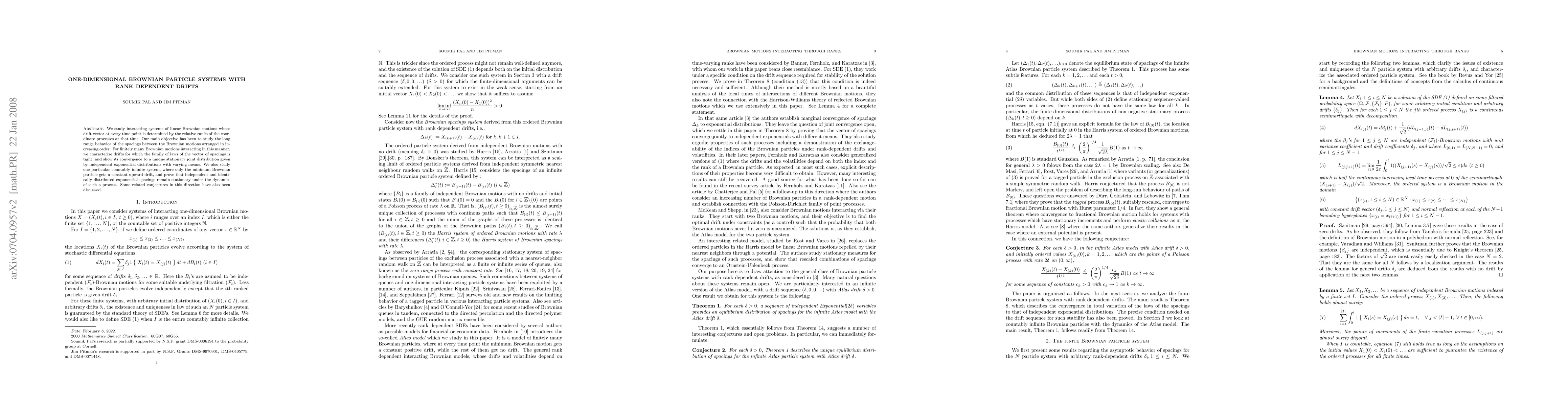 This paper examines the long-term behavior of spacings in systems of interacting Brownian motions with drifts based on particle ranks. It characterizes conditions for tightness and convergence of the spacings' distribution to a stationary form, with a focus on both finite and infinite particle systems, and discusses related conjectures.