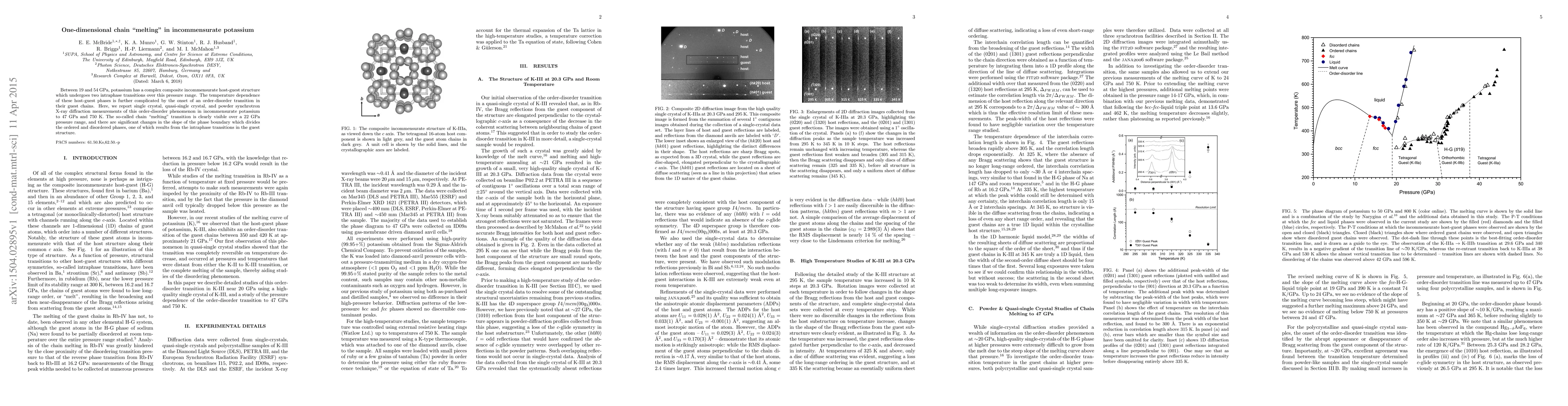 This study investigates the order-disorder transition in incommensurate potassium under high pressure and temperature, revealing a "melting" transition in guest chains over a 22 GPa range. The research utilizes synchrotron X-ray diffraction to observe significant changes in the phase boundary slope, influenced by intraphase transitions in the host structure.
