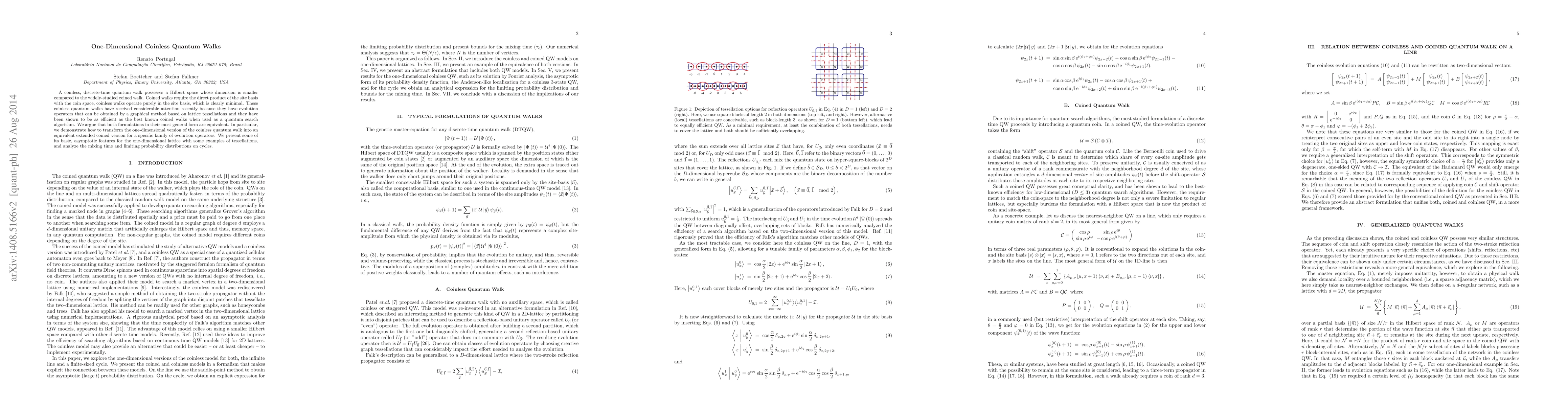 This paper explores one-dimensional coinless quantum walks, which operate purely in the site basis without requiring a coin space, and demonstrates their equivalence to extended coined walks. It shows that coinless walks can be as efficient as coined walks in quantum search algorithms and analyzes their asymptotic features, mixing time, and probability distributions.