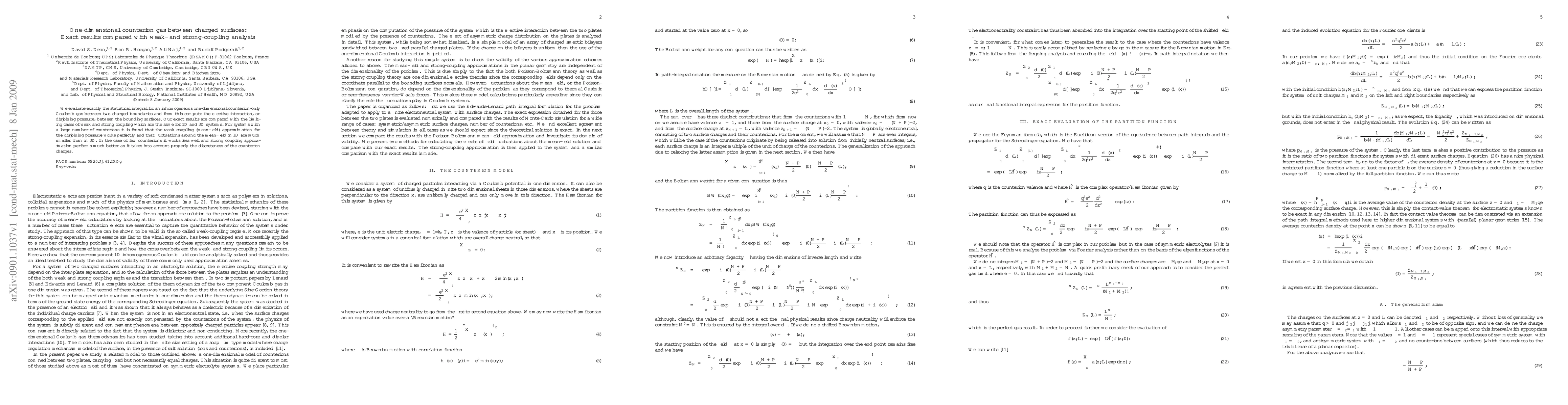 This paper presents exact results for the statistical integral of a one-dimensional counterion gas between charged surfaces, computing the effective interaction between them. It compares these results with weak- and strong-coupling approximations, finding that the weak coupling approximation works well for many counterions, while strong coupling is more accurate for few counterions due to the discreteness of charges.