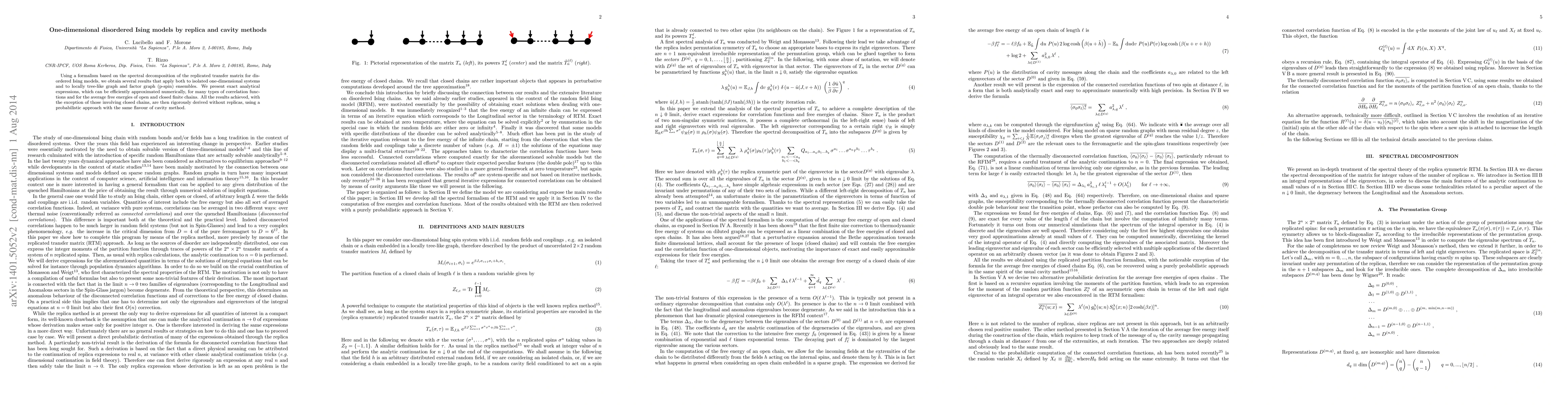Using a formalism based on the spectral decomposition of the replicated transfer matrix for disordered Ising models, we obtain several results that apply both to isolated one-dimensional systems and to locally tree-like graph and factor graph (p-spin) ensembles. We present exact analytical expressions, which can be efficiently approximated numerically, for many types of correlation functions and for the average free energies of open and closed finite chains. All the results achieved, with the exception of those involving closed chains, are then rigorously derived without replicas, using a probabilistic approach with the same flavour of cavity method.
