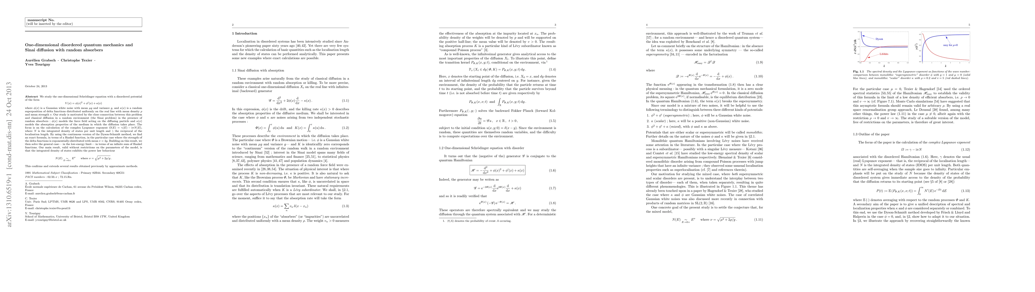 We study the one-dimensional Schr\"odinger equation with a disordered potential of the form $V (x) = \phi(x)^2+\phi'(x) + \kappa(x) $ where $\phi(x)$ is a Gaussian white noise with mean $\mu g$ and variance $g$, and $\kappa(x)$ is a random superposition of delta functions distributed uniformly on the real line with mean density $\rho$ and mean strength $v$. Our study is motivated by the close connection between this problem and classical diffusion in a random environment (the Sinai problem) in the presence of random absorbers~: $\phi(x)$ models the force field acting on the diffusing particle and $\kappa(x)$ models the absorption properties of the medium in which the diffusion takes place. The focus is on the calculation of the complex Lyapunov exponent $ \Omega(E) = \gamma(E) - \mathrm{i} \pi N(E) $, where $N$ is the integrated density of states per unit length and $\gamma$ the reciprocal of the localisation length. By using the continuous version of the Dyson-Schmidt method, we find an exact formula, in terms of a Hankel function, in the particular case where the strength of the delta functions is exponentially-distributed with mean $v=2g$. Building on this result, we then solve the general case -- in the low-energy limit -- in terms of an infinite sum of Hankel functions. Our main result, valid without restrictions on the parameters of the model, is that the integrated density of states exhibits the power law behaviour $$ N(E) \underset{E\to0+}{\sim} E^\nu \hspace{0.5cm} \mbox{where } \nu=\sqrt{\mu^2+2\rho/g}\:. $$ This confirms and extends several results obtained previously by approximate methods.