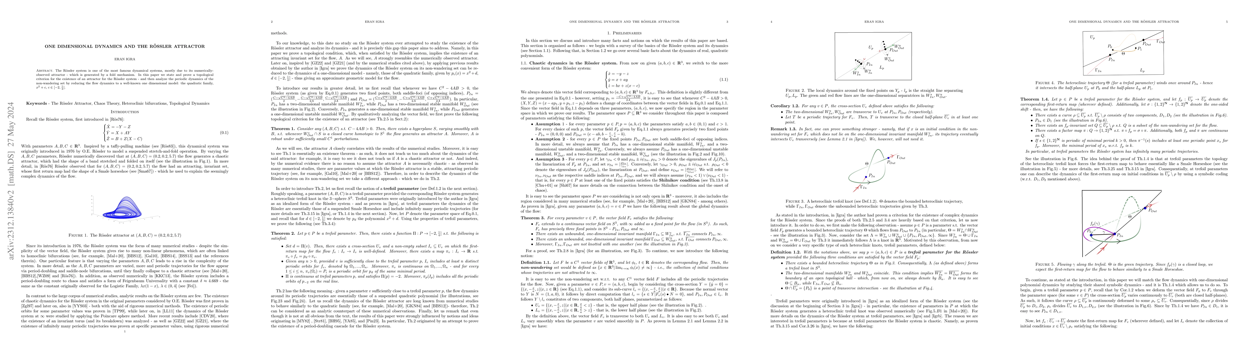The R\"ossler system is one of the best known chaotic dynamical systems, generating a chaotic attractor which, by the numerical evidence, arises by a period-doubling route to chaos. In this paper we state and prove a topological criterion for the existence of an attractor for the R\"ossler system - and then analyze the dynamics of the non-wandering set by reducing the flow to the dynamics of a well-known one dimensional model: the Quadratic Family, $x^2+c$, $-2\leq c\leq\frac{1}{4}$.