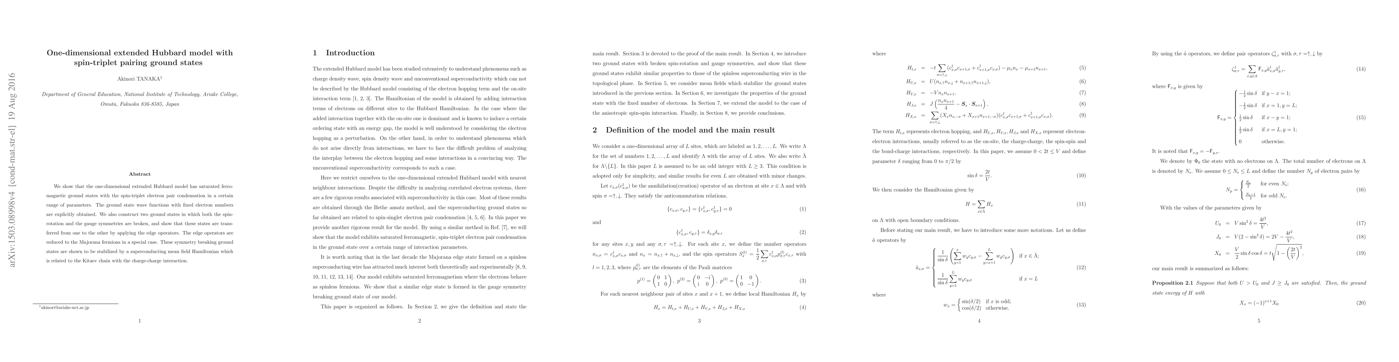 Researchers found ground states in a 1D extended Hubbard model where electron pairs form spin-triplet condensates, breaking symmetry and exhibiting superconducting properties.