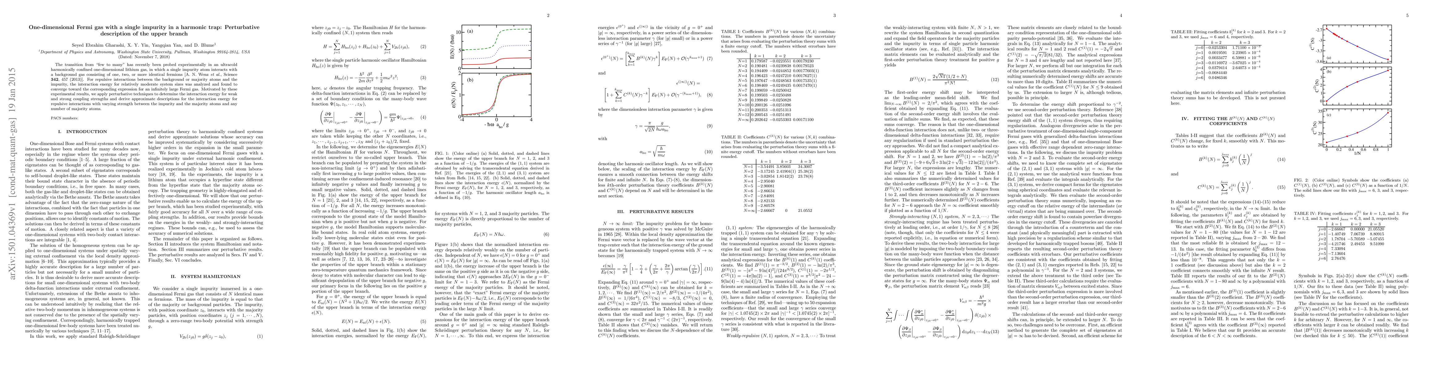 The research employs perturbative techniques to determine interaction energies for a one-dimensional Fermi gas with a single impurity in a harmonic trap, analyzing both weak and strong coupling strengths.
