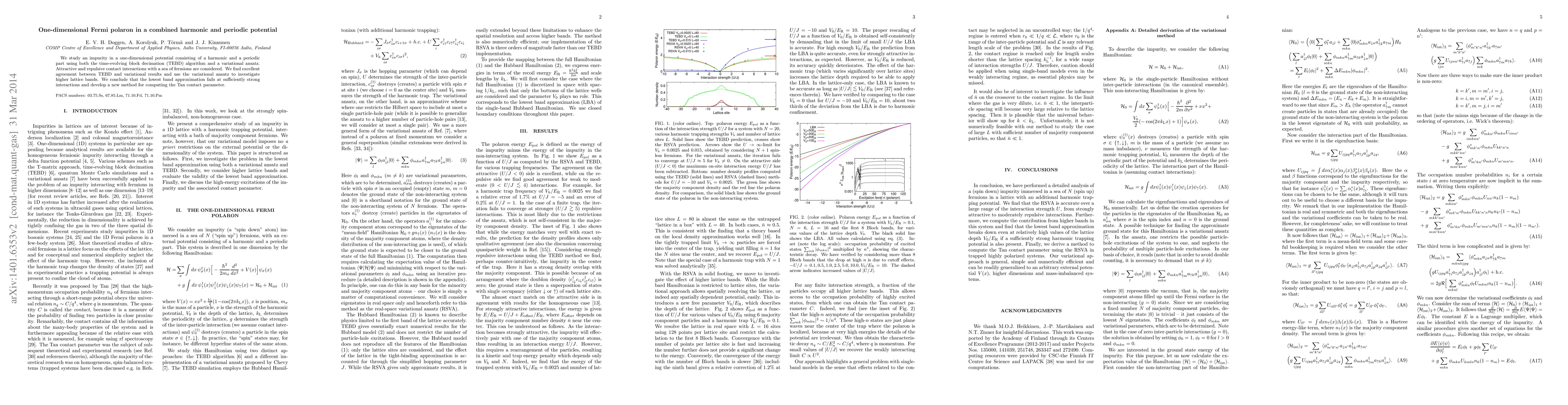 This paper investigates a one-dimensional Fermi polaron in a combined harmonic and periodic potential using TEBD and variational methods, finding strong interactions necessitate a new approach beyond the lowest band approximation. A new method for computing the Tan contact parameter is developed.