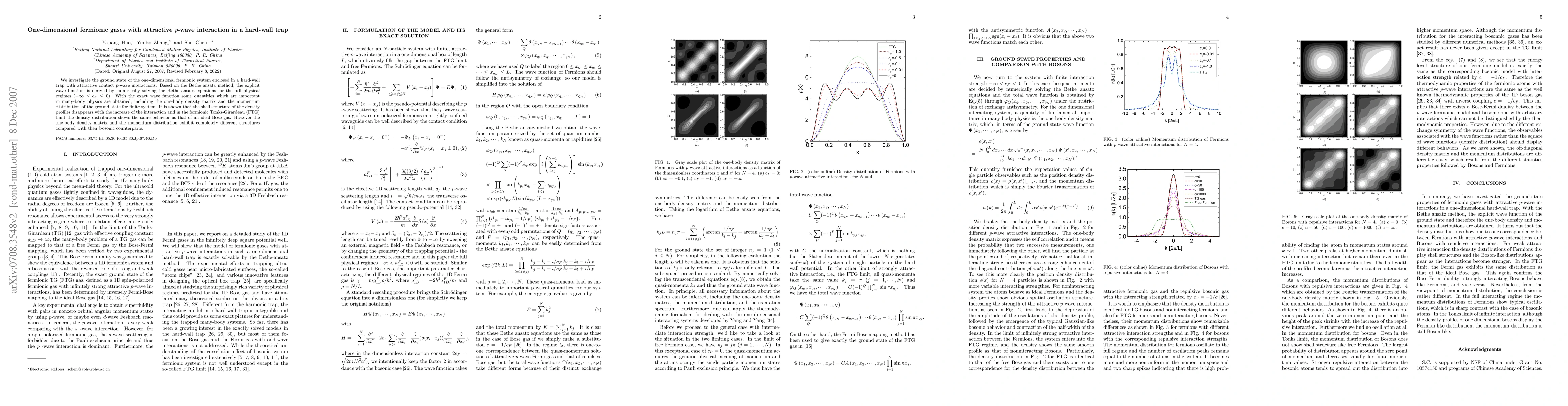This paper uses the Bethe ansatz method to derive the exact wave function for a one-dimensional fermionic gas with attractive p-wave interactions in a hard-wall trap. The study reveals that while the density distribution resembles that of an ideal Bose gas in the fermionic Tonks-Girardeau limit, the one-body density matrix and momentum distribution differ significantly from their bosonic counterparts.