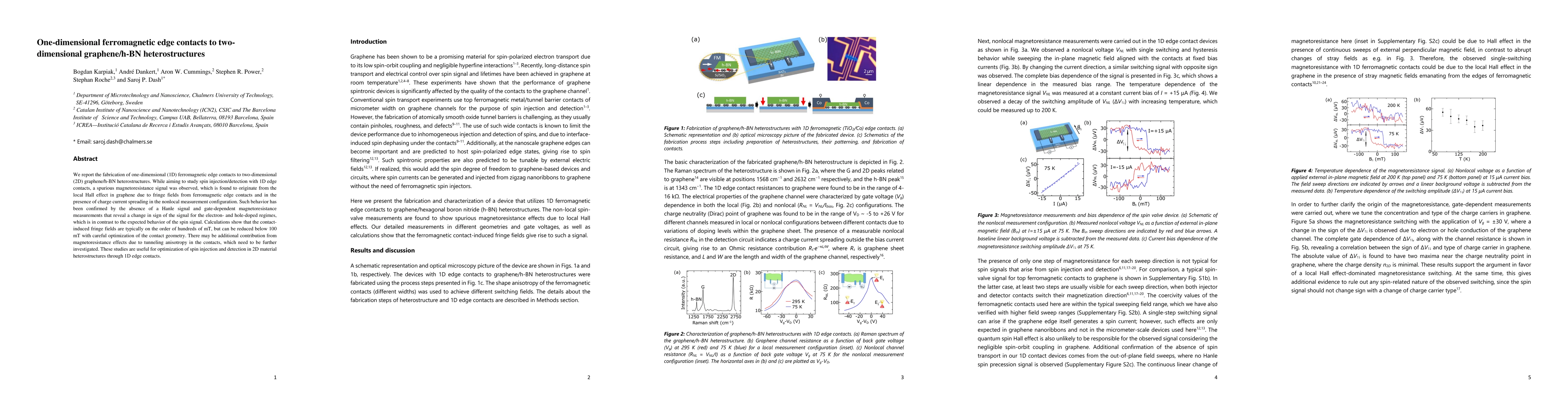 This research fabricates one-dimensional ferromagnetic edge contacts on graphene/h-BN heterostructures, revealing a spurious magnetoresistance signal due to local Hall effects from fringe fields, rather than spin injection. Optimization of contact geometry can reduce these fringe fields.
