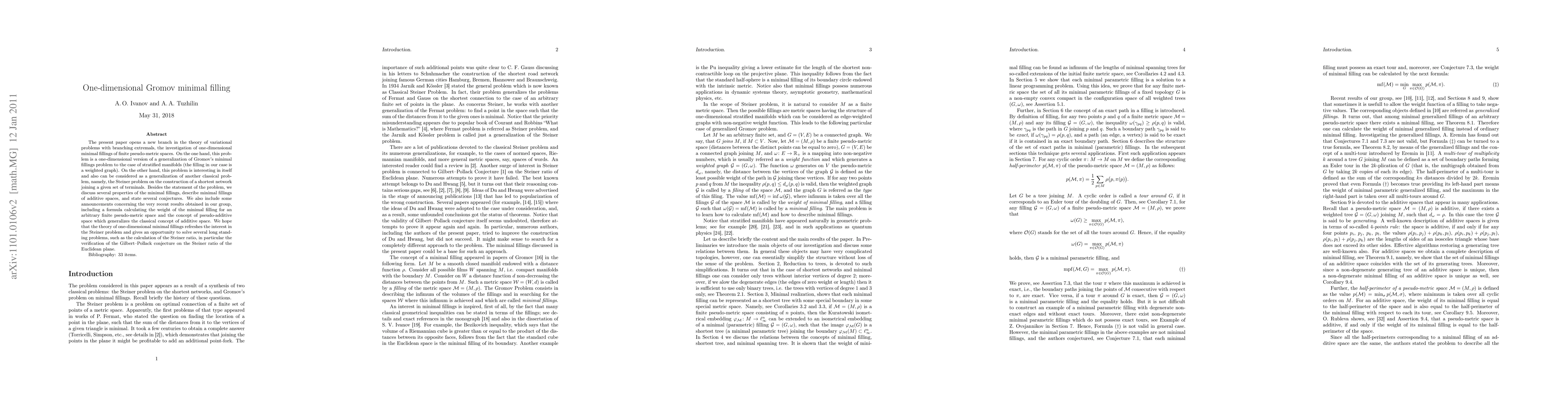 This paper introduces a new branch of variational problems focusing on one-dimensional minimal fillings of finite pseudo-metric spaces, generalizing Gromov's minimal fillings and the Steiner problem. It also presents recent results including a formula for minimal filling weights and the concept of pseudo-additive space.