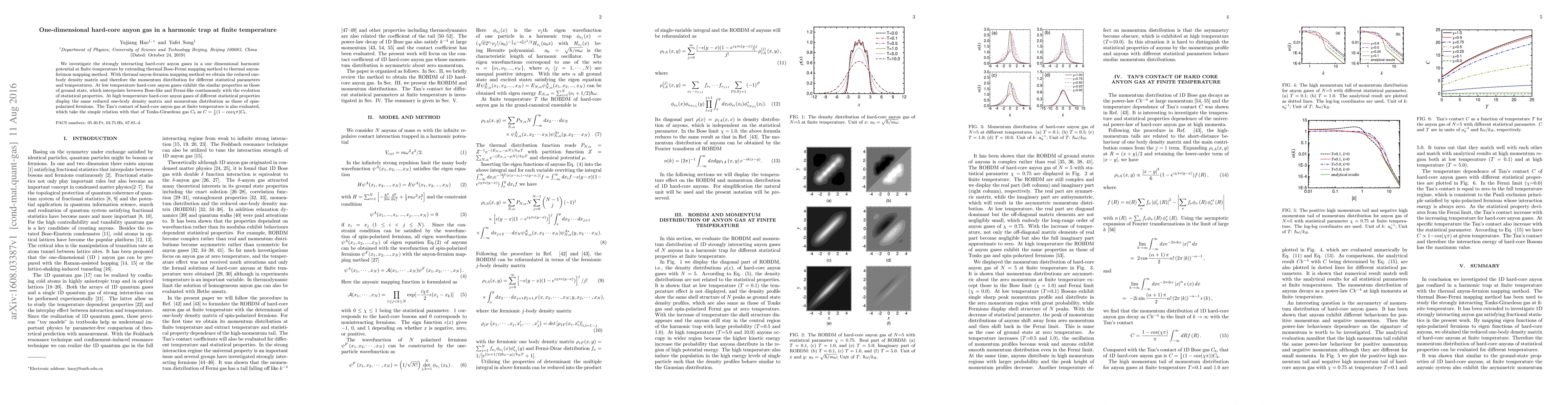 This paper explores the behavior of strongly interacting hard-core anyon gases in a one-dimensional harmonic trap at finite temperature using a thermal anyon-fermion mapping method. It finds that at low temperatures, the anyon gas properties interpolate between Bose-like and Fermi-like behaviors, while at high temperatures, they resemble spin-polarized fermions.