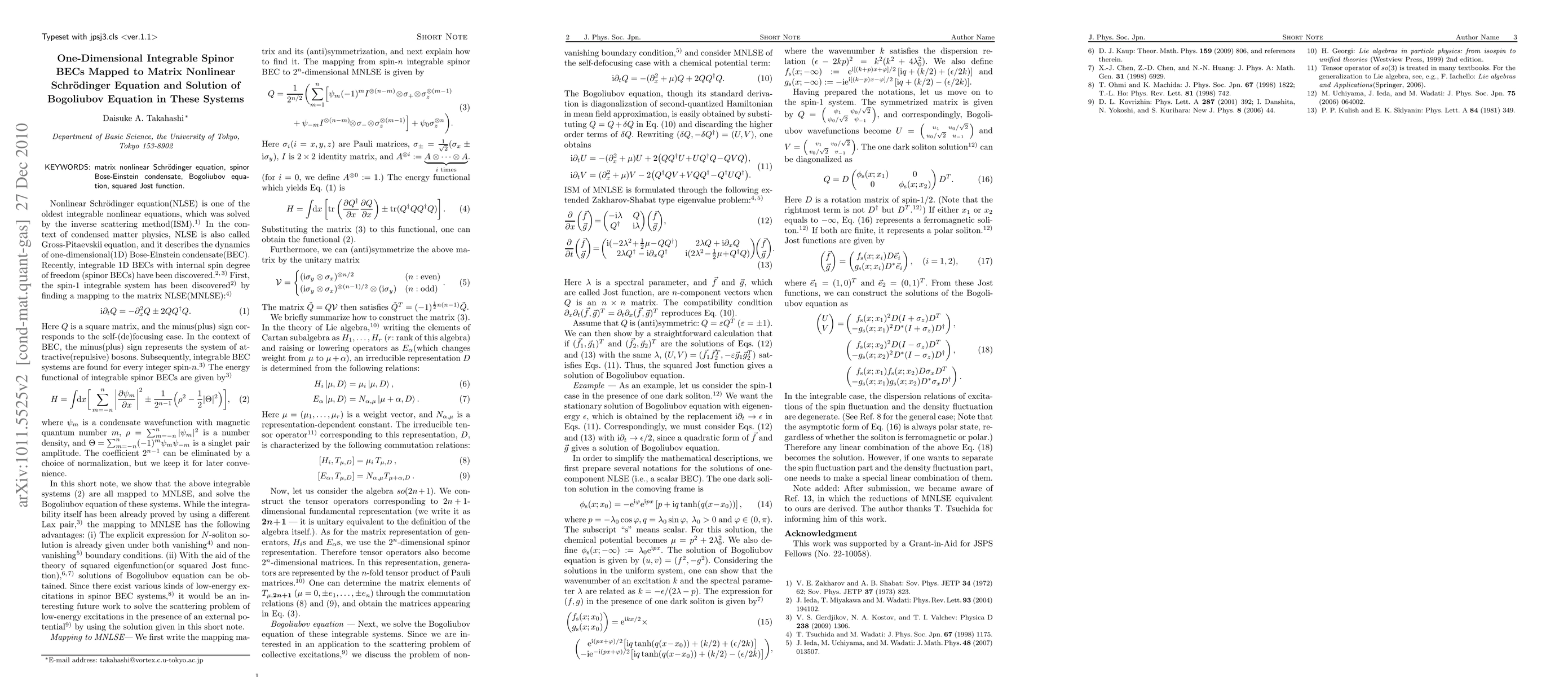 Researchers created a mapping between one-dimensional spinor BECs and nonlinear Schr"odinger equations, solving the Bogoliubov equation using squared Jost functions.
