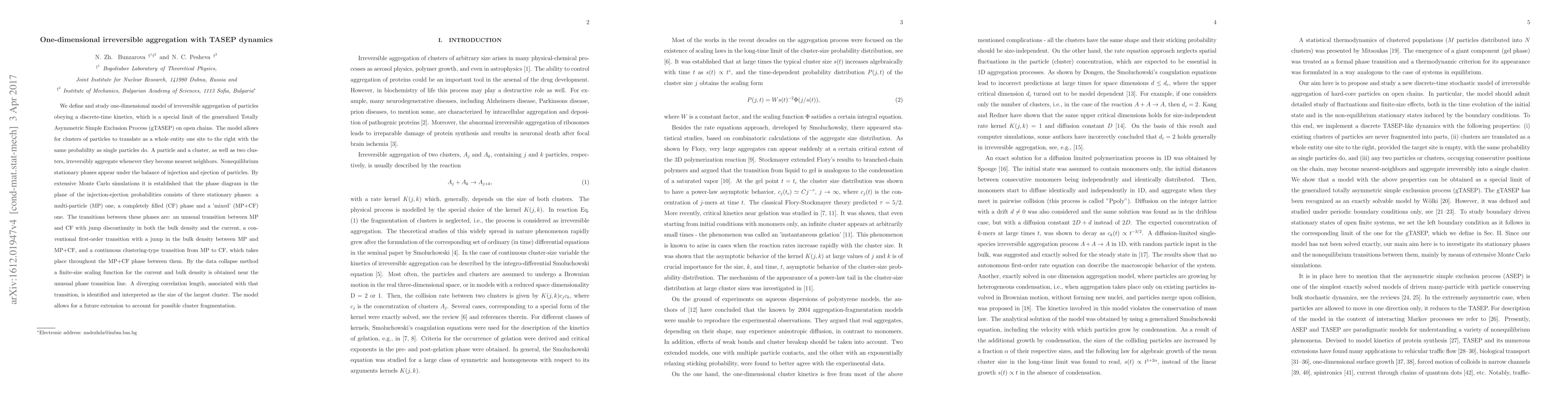 This paper studies a one-dimensional irreversible aggregation model based on a special limit of the generalized Totally Asymmetric Simple Exclusion Process (gTASEP). It identifies three nonequilibrium stationary phases through Monte Carlo simulations and analyzes the transitions between them, including an unusual discontinuous transition and a continuous clustering-type transition. The model also allows for future extensions to include cluster fragmentation.