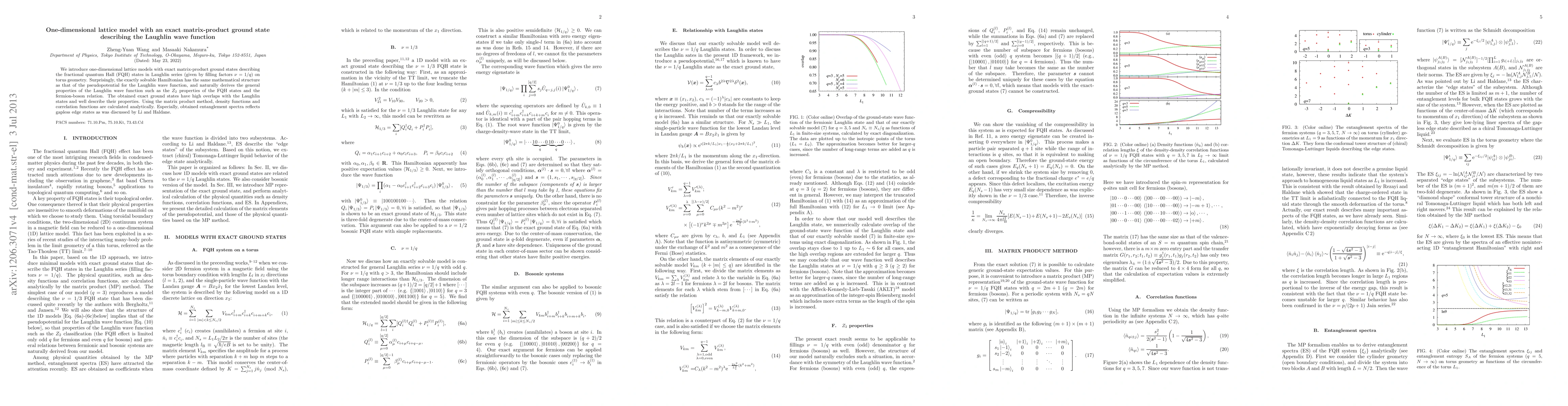 This paper presents a one-dimensional lattice model with an exact matrix-product ground state that accurately describes the Laughlin wave function for fractional quantum Hall states. The model naturally derives properties such as the $Z_2$ properties and the fermion-boson relation, and its entanglement spectra reflect gapless edge states.
