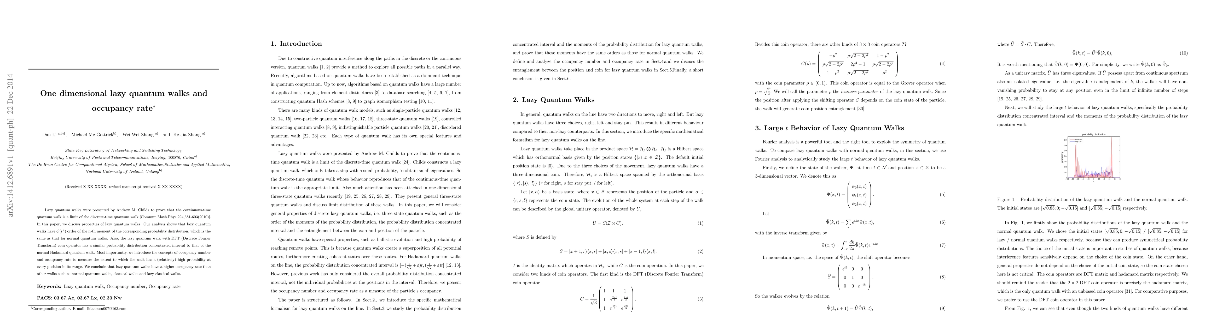 This paper explores lazy quantum walks, demonstrating their $O(t^n)$ n-th moment order akin to normal quantum walks. It introduces occupancy number and occupancy rate concepts, revealing that lazy quantum walks exhibit a higher occupancy rate compared to normal quantum walks, classical walks, and lazy classical walks.