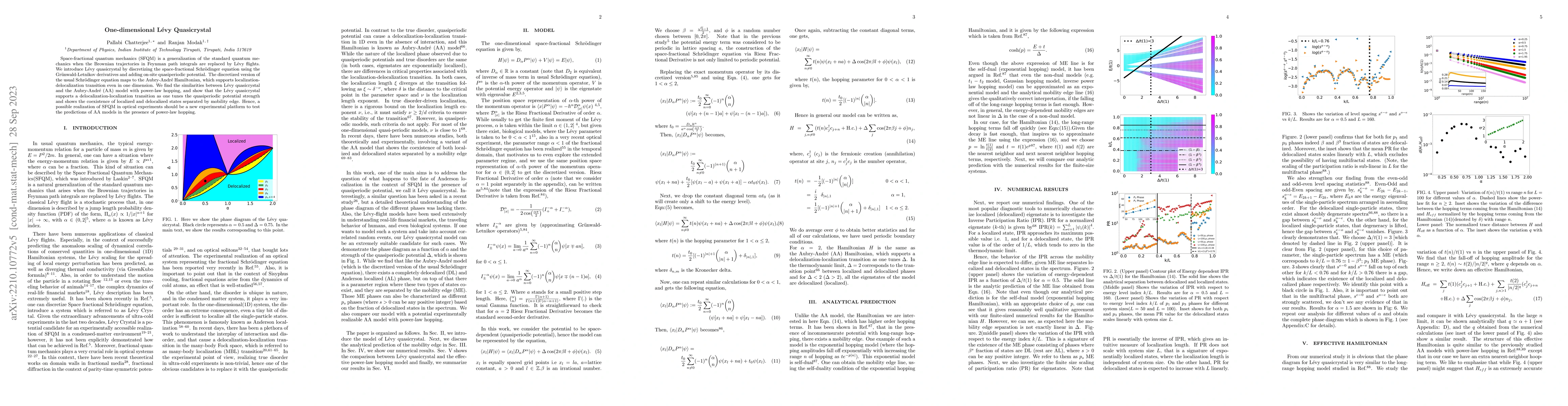This paper introduces a one-dimensional Lévy quasicrystal derived from space-fractional quantum mechanics, showing a localization-delocalization transition akin to the Aubry-André model. It suggests that this model could serve as a new experimental platform for testing predictions of Aubry-André models with power-law hopping in optical experiments.
