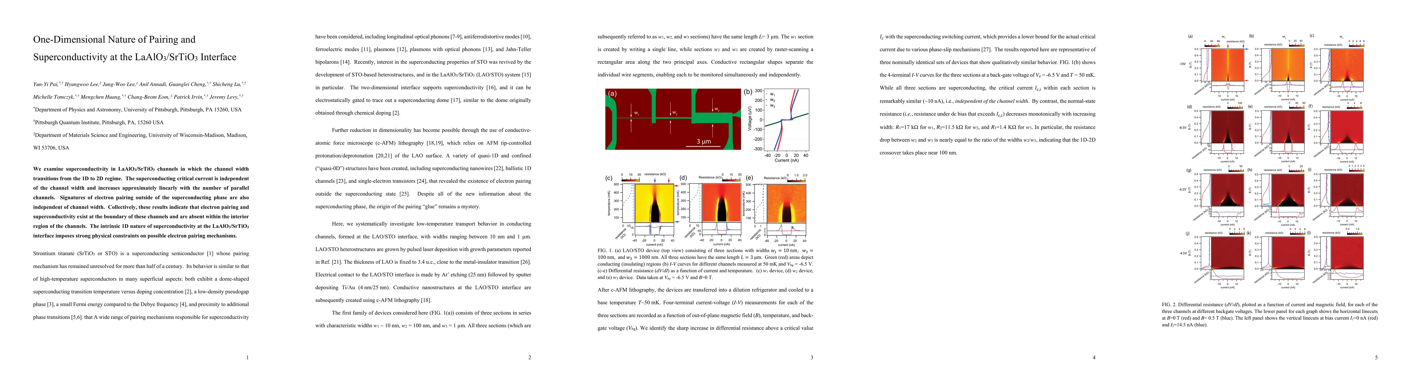 This study reveals that superconductivity at the LaAlO$_3$/SrTiO$_3$ interface exhibits a one-dimensional nature, with pairing and critical current independent of channel width, suggesting confinement to the boundary. The findings constrain potential electron pairing mechanisms due to this intrinsic 1D behavior.