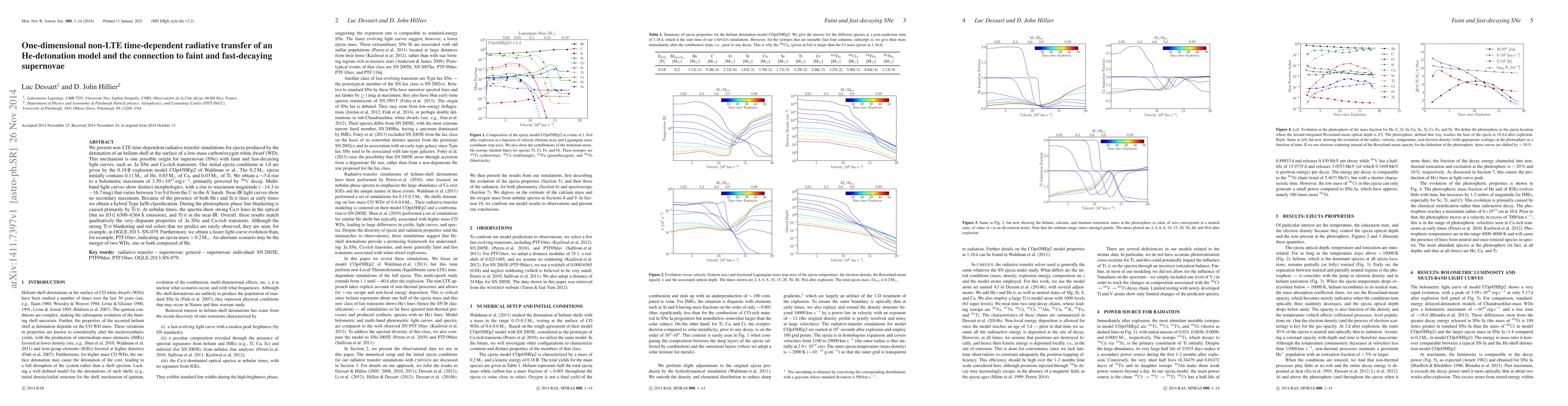 We present non-LTE time-dependent radiative transfer simulations for ejecta produced by the detonation of an helium shell at the surface of a low-mass carbon/oxygen white dwarf (WD). This mechanism is one possible origin for supernovae (SNe) with faint and fast-decaying light curves, such as .Ia SNe and Ca-rich transients. Our initial ejecta conditions at 1d are given by the 0.18B explosion model COp45HEp2 of Waldman et al.. The 0.2Msun ejecta initially contains 0.11Msun of He, 0.03Msun of Ca, and 0.03Msun of Ti. We obtain a ~5d rise to a bolometric maximum of 3.59x10^41 erg/s, primarily powered by 48V decay. Multi-band light curves show distinct morphologies, with a rise to maximum magnitude (-14.3 to -16.7mag) that varies between 3 to 9d from the U to the K bands. Near-IR light curves show no secondary maximum. Because of the presence of both HeI and SiII lines at early times we obtain a hybrid Type Ia/Ib classification. During the photospheric phase line blanketing is caused primarily by TiII. At nebular times, the spectra show strong CaII lines in the optical (but no [OI] 6300--6364A emission), and TiII in the near-IR. Overall, these results match qualitatively the very disparate properties of .Ia SNe and Ca-rich transients. Although the strong TiII blanketing and red colors that we predict are rarely observed, they are seen, for example, in OGLE-2013- SN-079. Furthermore, we obtain a faster light-curve evolution than, for example, PTF10iuv, indicating an ejecta mass >0.2Msun. An alternate scenario may be the merger of two WDs, one or both composed of He.
