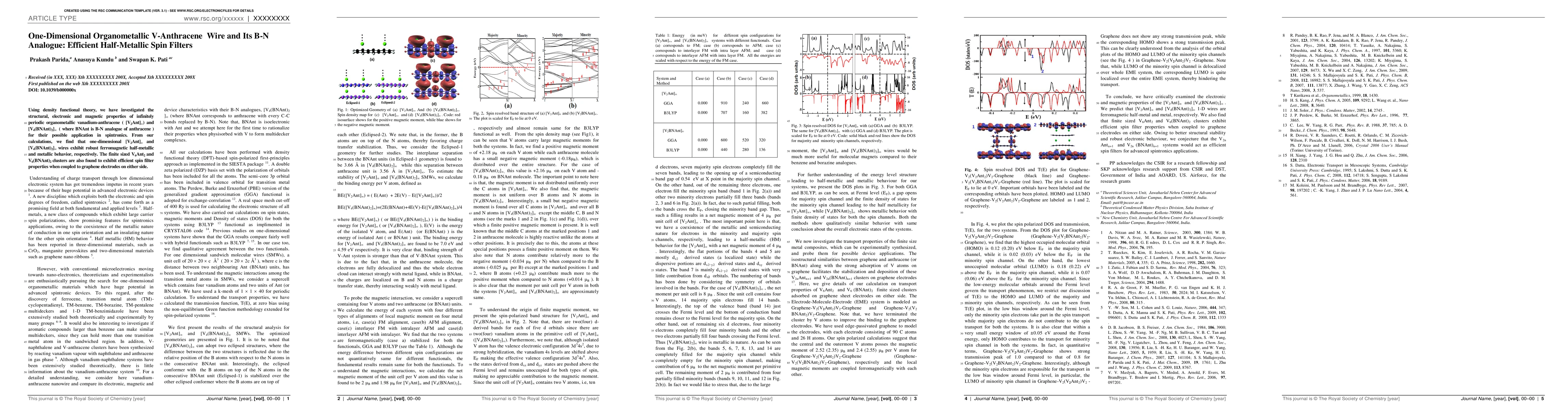 Using density functional theory, we have investigated the structural, electronic and magnetic properties of infinitely periodic organometallic vanadium-anthracene ($[V_2Ant]_\infinity)$ and $[V_4(BNAnt)_2]_\infinity$(where BNAnt is B-N analogue of anthracene) for their possible application in spintronics. From our calculations, we find that one-dimensional $[V_2Ant]_\infinity$ and $[V_4(BNAnt)_2]_\infinity$ wires exhibit robust ferromagnetic half-metallic and metallic behavior, respectively. The finite sized $V_6Ant_2$ and $V_6(BNAnt)_2$ clusters are also found to exhibit efficient spin filter properties when coupled to graphene electrodes on either side.