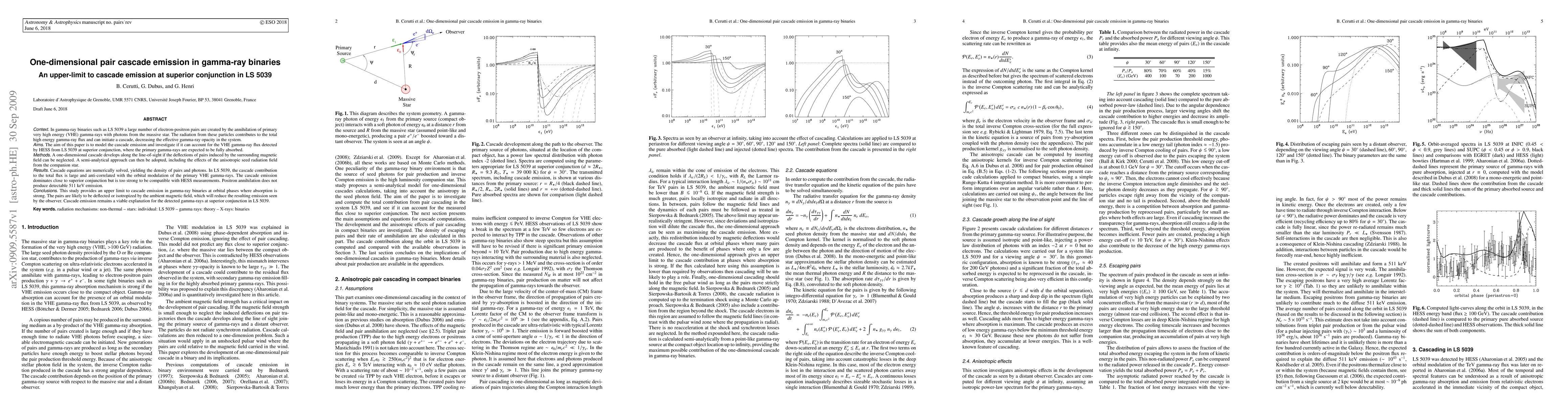 This paper models the one-dimensional pair cascade emission in gamma-ray binaries like LS 5039, finding that while the cascade can account for a significant portion of the detected VHE gamma-ray flux, it is too strong to match observations near superior conjunction. The study concludes that ambient magnetic fields likely reduce the observed emission.