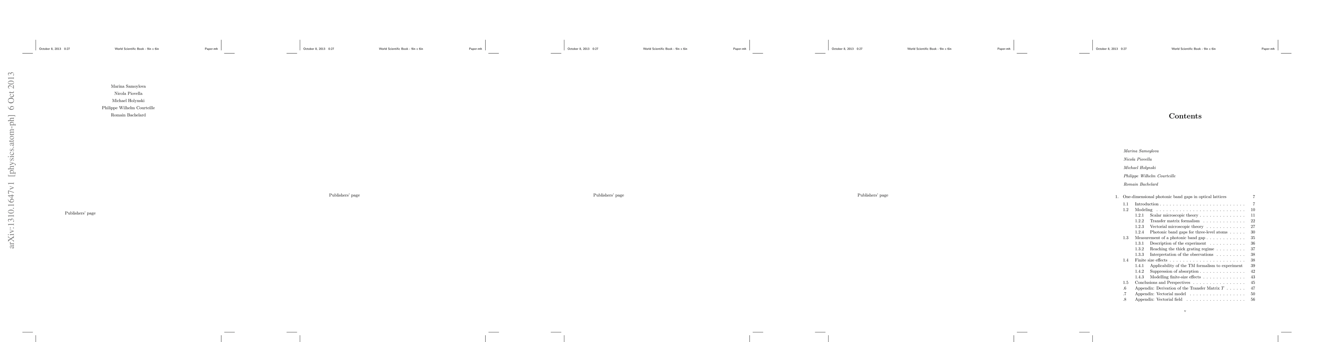 Researchers review photonic band gaps in one-dimensional optical lattices using microscopic models, achieving good agreement with experimental data, and proposing new analytical results for scalar and vectorial light interactions.