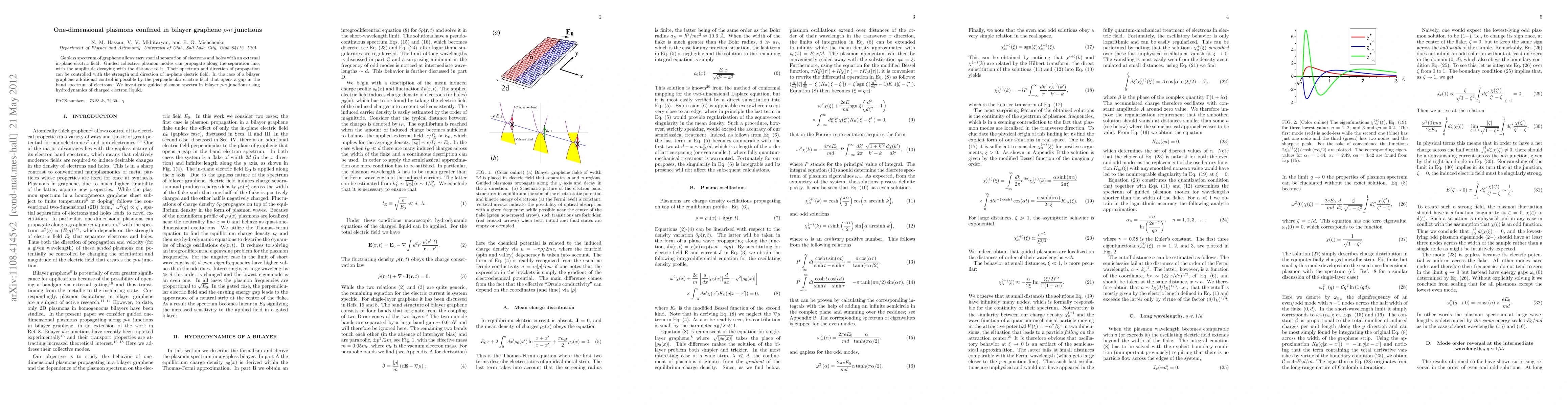 Gapless spectrum of graphene allows easy spatial separation of electrons and holes with an external in-plane electric field. Guided collective plasmon modes can propagate along the separation line, whose amplitude decays with the distance to it. Their spectrum and direction of propagation can be controlled with the strength and direction of in-plane electric field. In case of a bilayer graphene additional control is possible by the perpendicular electric field that opens a gap in the band spectrum of electrons. We investigate guided plasmon spectra in bilayer p-n junctions using hydrodynamics of charged electron liquid.