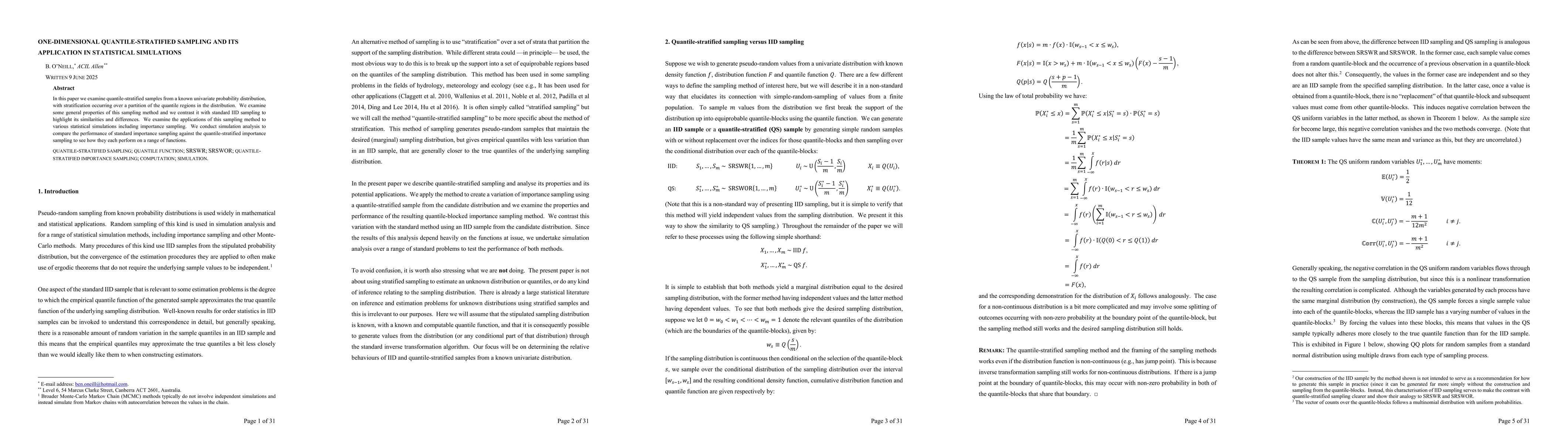 This paper explores a new sampling method called quantile-stratified sampling, which is compared to traditional IID sampling in statistical simulations. It examines the performance of this method against standard importance sampling in various applications.