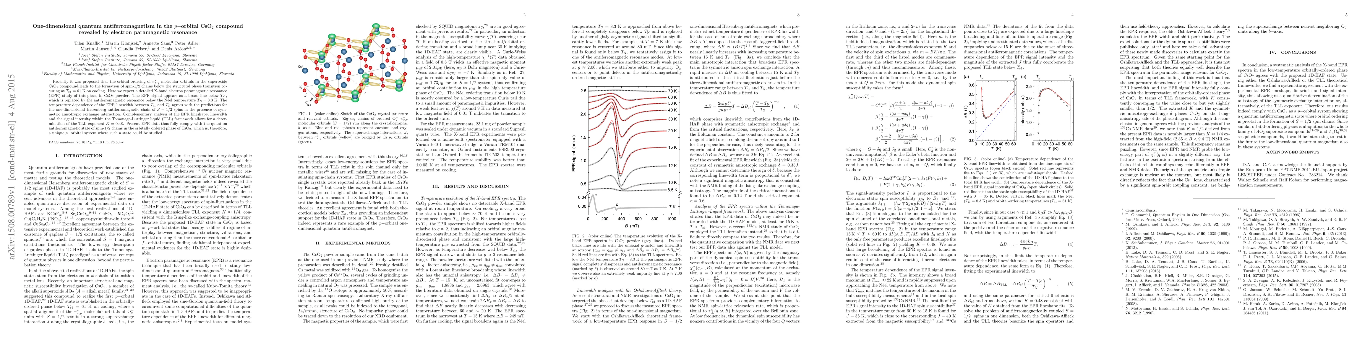 Researchers studied the CsO2 compound using electron paramagnetic resonance to find evidence of one-dimensional quantum antiferromagnetism in its p-orbital system, revealing spin-1/2 chains at low temperatures.