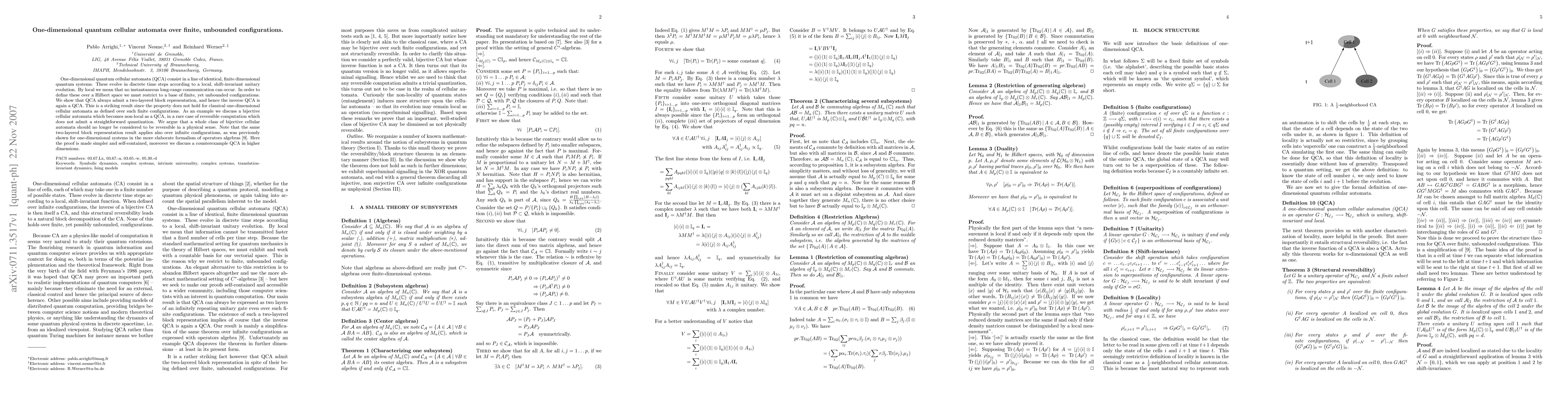 This paper explores one-dimensional quantum cellular automata (QCA) over finite, unbounded configurations, demonstrating that they always admit a two-layered block representation, unlike classical counterparts. The authors argue that this property implies a class of bijective cellular automata should not be considered reversible in a physical sense.