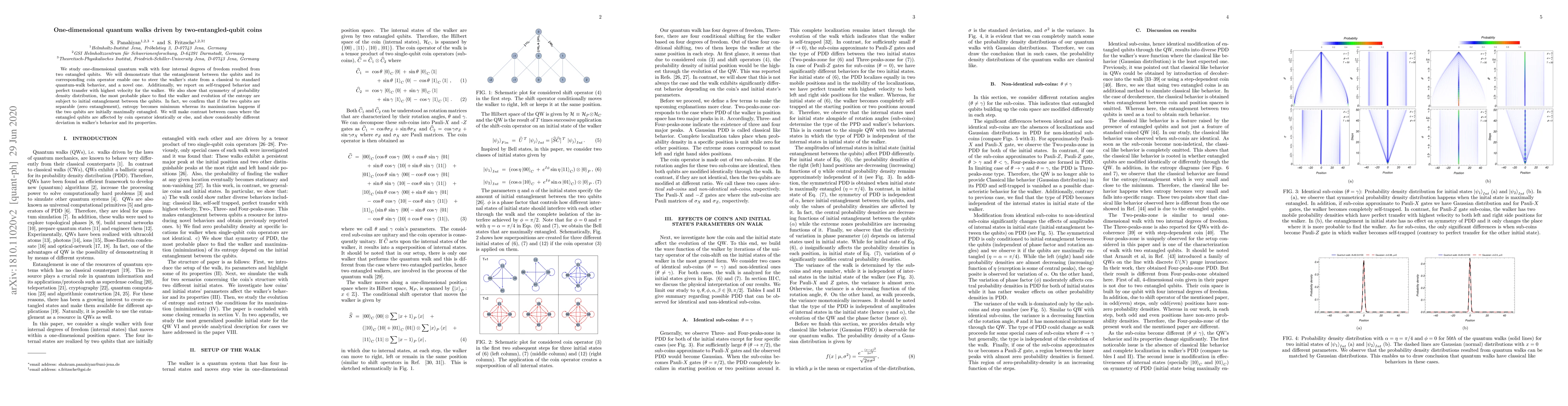 This paper investigates one-dimensional quantum walks driven by two entangled qubits, demonstrating that the entanglement between qubits influences the walker's state, steering it from classical to novel quantum behaviors. The study highlights self-trapped behavior, perfect transfer, and the impact of qubit entanglement on the walker's probability density distribution, entropy, and velocity.