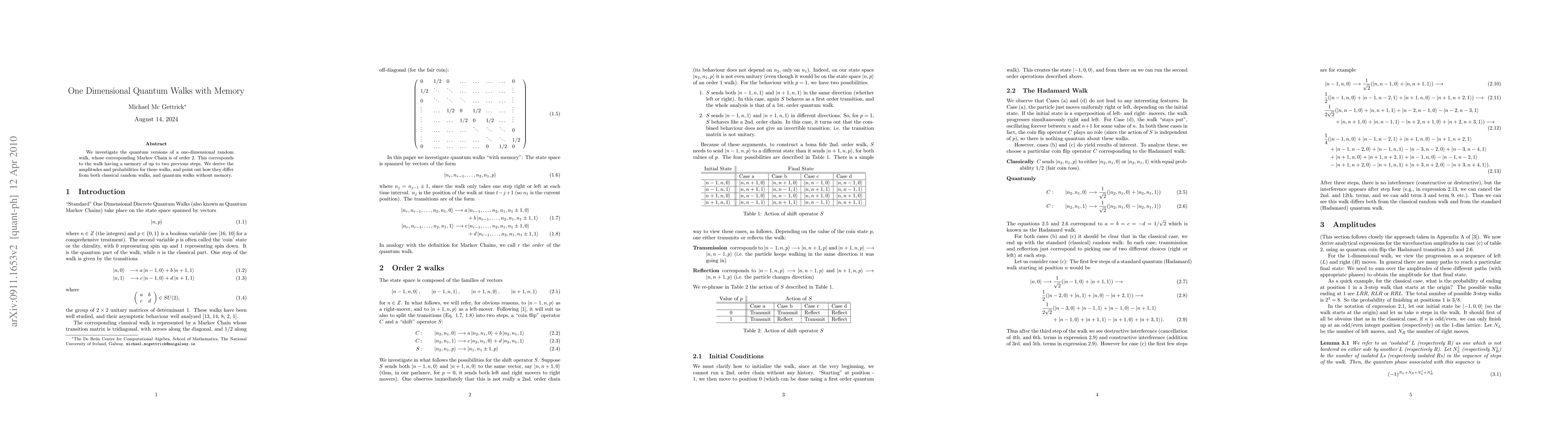 This paper explores the quantum versions of a one-dimensional random walk with memory up to two previous steps, deriving unique amplitudes and probabilities that differ significantly from both classical random walks and quantum walks without memory.