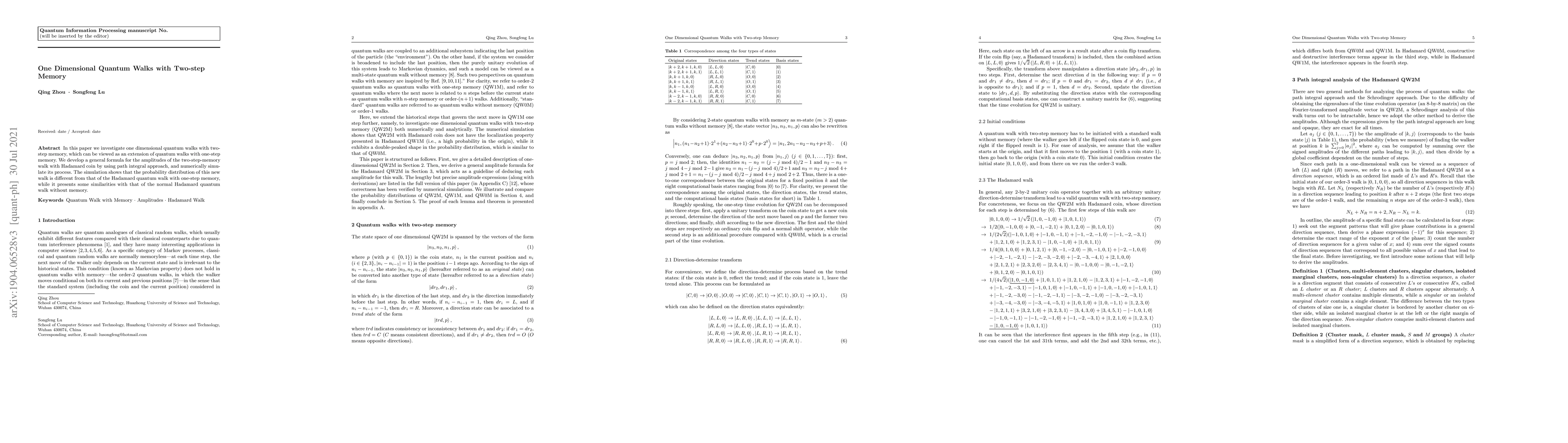 This paper explores one-dimensional quantum walks with two-step memory, extending the concept of one-step memory. It develops a formula for the amplitudes using a path integral approach and demonstrates through numerical simulations that the probability distribution differs from the one-step memory walk but shares similarities with the standard Hadamard quantum walk.