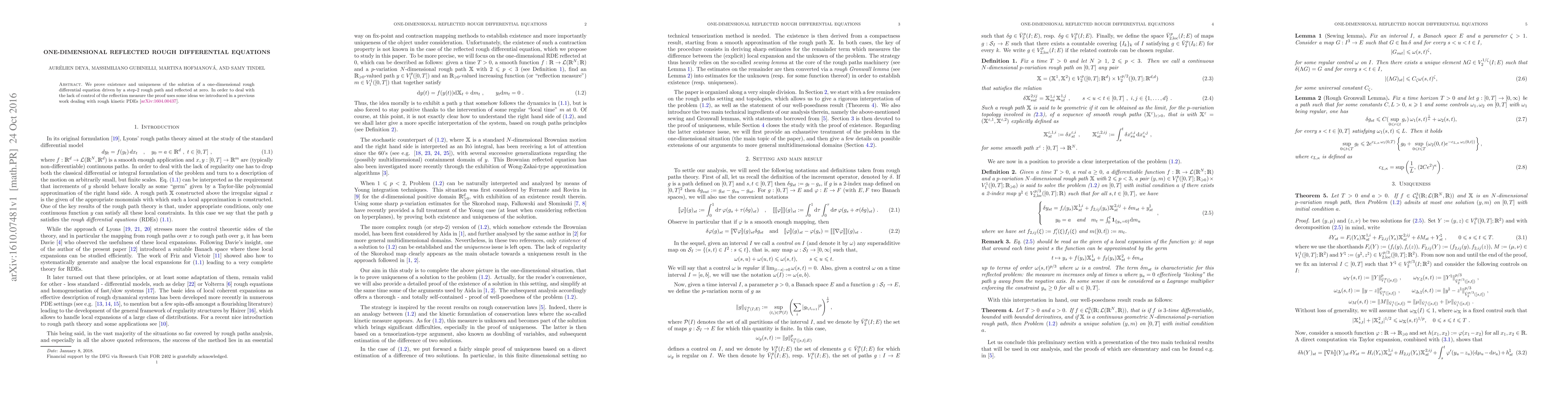 We prove existence and uniqueness of the solution of a one-dimensional rough differential equation driven by a step-2 rough path and reflected at zero. In order to deal with the lack of control of the reflection measure the proof uses some ideas we introduced in a previous work dealing with rough kinetic PDEs [arXiv:1604.00437].