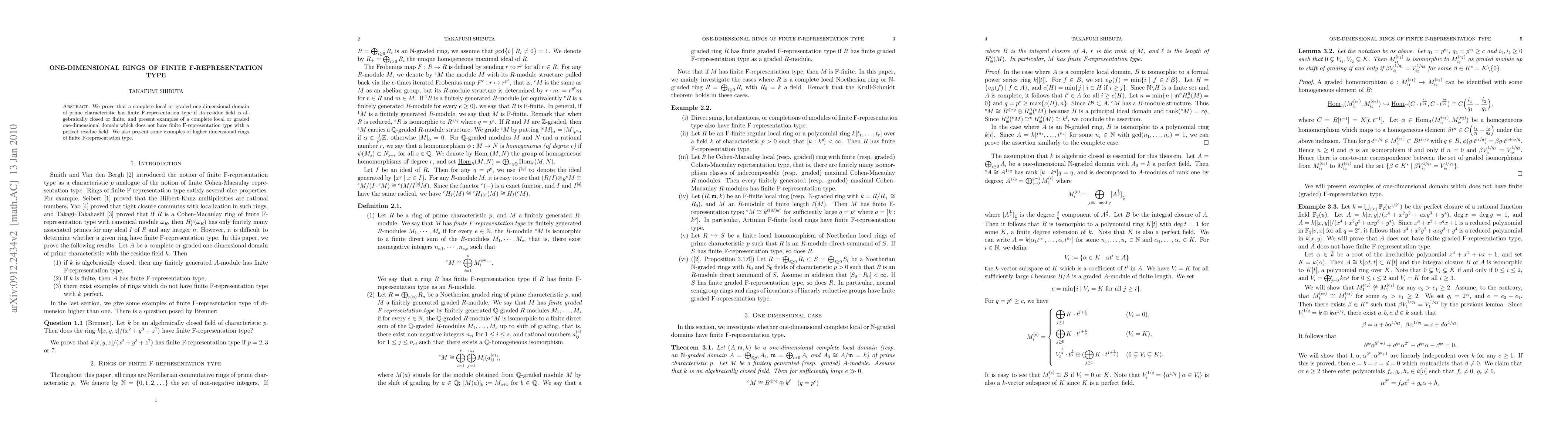 This paper proves that certain one-dimensional rings in prime characteristic have finite F-representation type when their residue fields are algebraically closed or finite, while also providing counterexamples for domains with perfect residue fields. It concludes with examples of higher-dimensional rings of finite F-representation type.