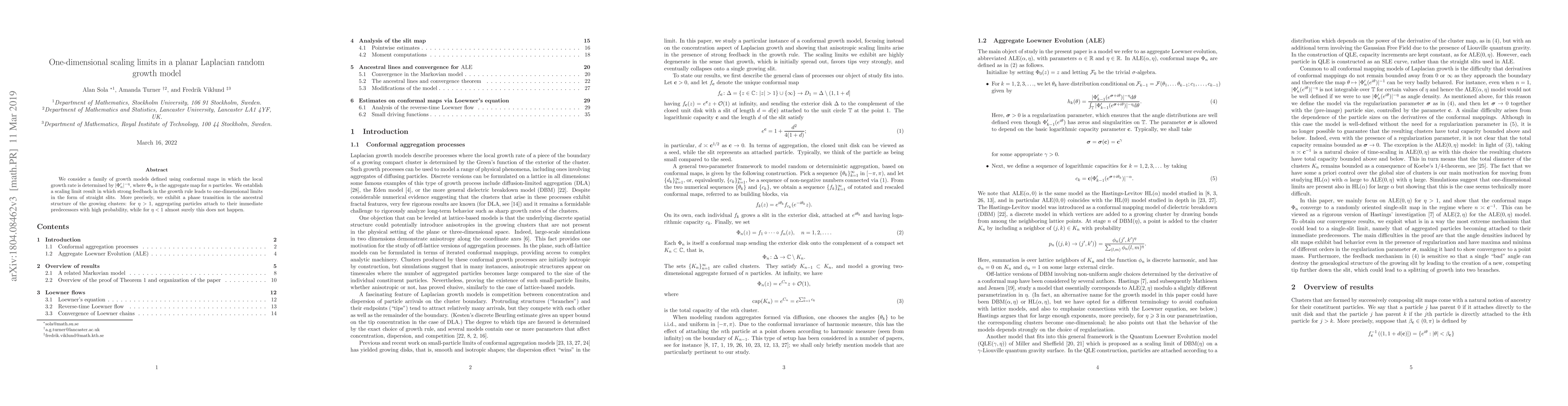 We consider a family of growth models defined using conformal maps in which the local growth rate is determined by $|\Phi_n'|^{-\eta}$, where $\Phi_n$ is the aggregate map for $n$ particles. We establish a scaling limit result in which strong feedback in the growth rule leads to one-dimensional limits in the form of straight slits. More precisely, we exhibit a phase transition in the ancestral structure of the growing clusters: for $\eta>1$, aggregating particles attach to their immediate predecessors with high probability, while for $\eta<1$ almost surely this does not happen.
