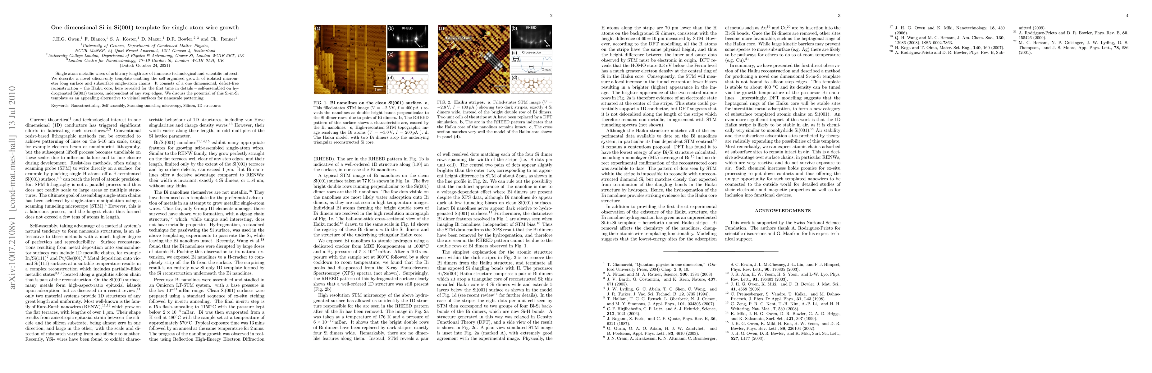 This research introduces a novel silicon-only template for the self-organised growth of isolated, micrometer-long single-atom metallic wires, utilizing a one-dimensional defect-free reconstruction termed the Haiku core on hydrogenated Si(001) terraces. This method offers an alternative to vicinal surfaces for nanoscale patterning.