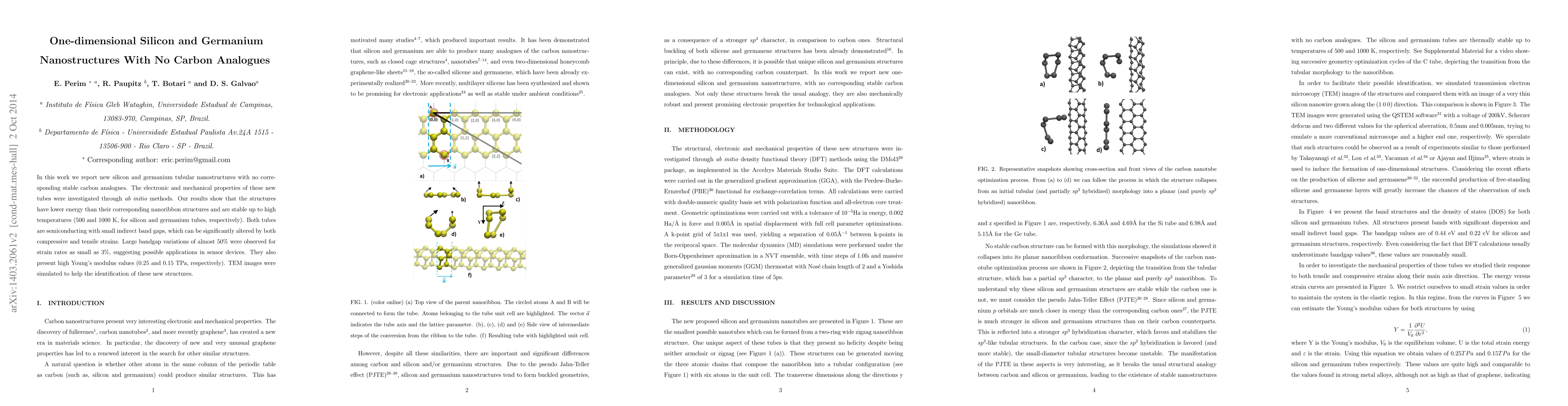 This paper reports the discovery of stable silicon and germanium tubular nanostructures without stable carbon analogues. These tubes exhibit semiconducting properties with small indirect band gaps that can be significantly modified by strain, and they show high mechanical stability and potential for sensor applications.