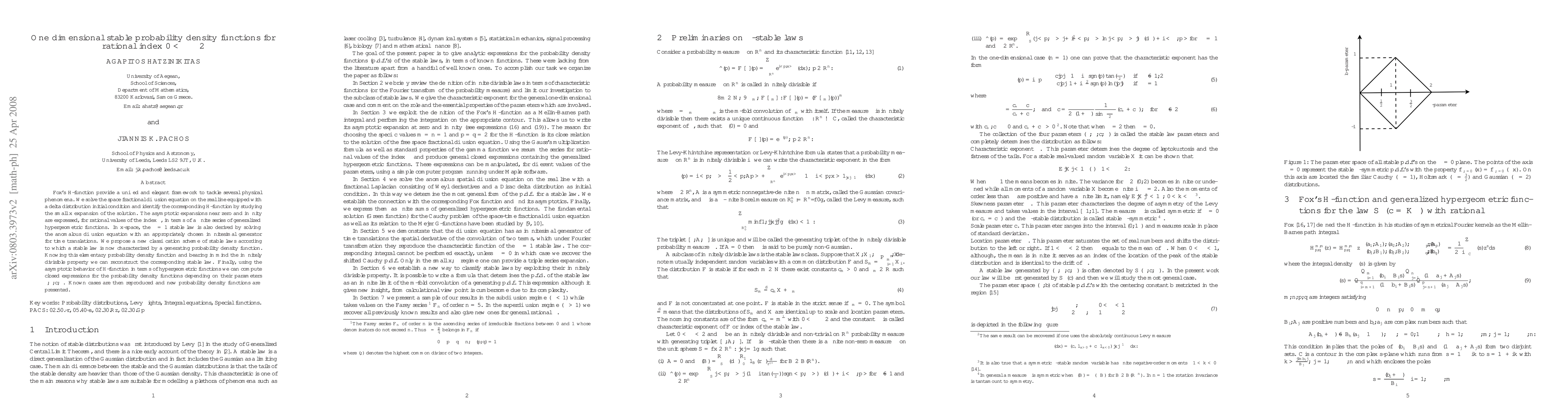Fox's H-function provide a unified and elegant framework to tackle several physical phenomena. We solve the space fractional diffusion equation on the real line equipped with a delta distribution initial condition and identify the corresponding H-function by studying the small $x$ expansion of the solution. The asymptotic expansions near zero and infinity are expressed, for rational values of the index $\alpha$, in terms of a finite series of generalized hypergeometric functions. In $x$-space, the $\alpha=1$ stable law is also derived by solving the anomalous diffusion equation with an appropriately chosen infinitesimal generator for time translations. We propose a new classification scheme of stable laws according to which a stable law is now characterized by a generating probability density function. Knowing this elementary probability density function and bearing in mind the infinitely divisible property we can reconstruct the corresponding stable law. Finally, using the asymptotic behavior of H-function in terms of hypergeometric functions we can compute closed expressions for the probability density functions depending on their parameters $\alpha, \beta, c, \tau $. Known cases are then reproduced and new probability density functions are presented.