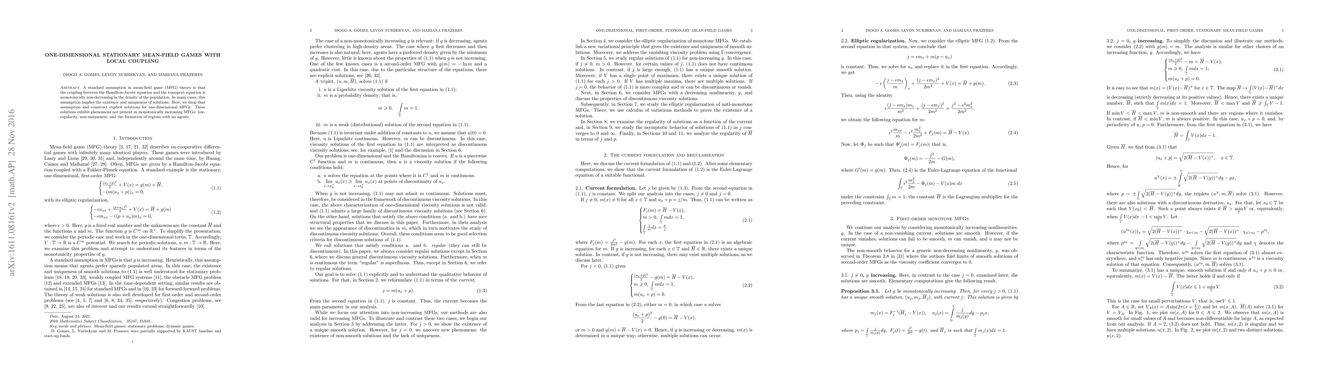 This research constructs explicit one-dimensional mean-field game solutions without the usual monotonically non-decreasing density coupling assumption, revealing low-regularity, non-uniqueness, and potential agentless regions.