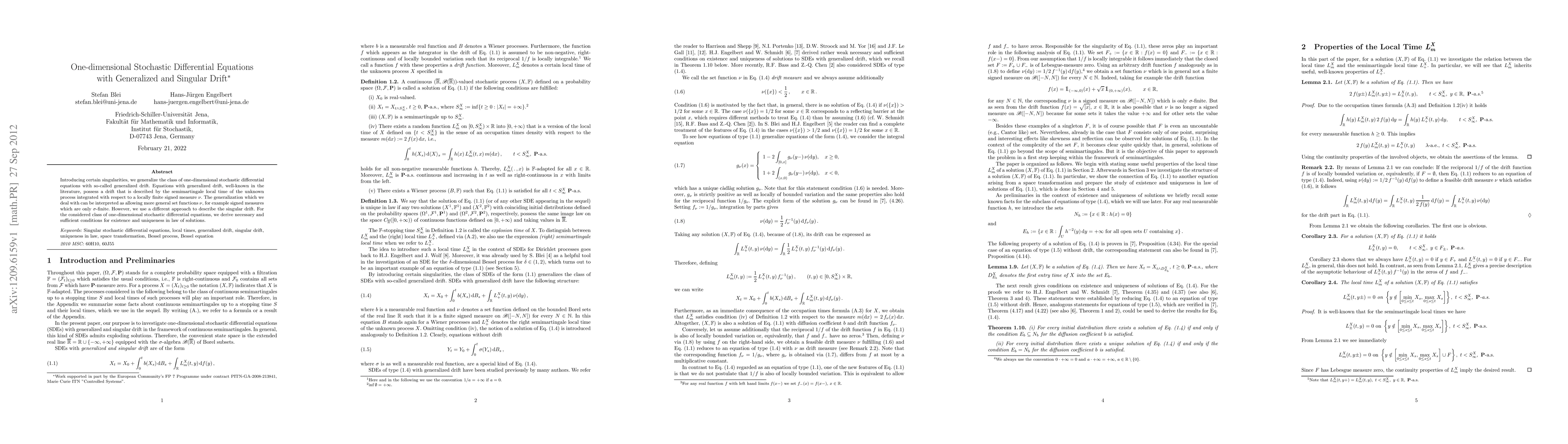 This paper generalizes one-dimensional stochastic differential equations (SDEs) with a drift described by semimartingale local time, allowing for more general set functions like \sigma-finite signed measures. It introduces singular drifts and provides conditions for the existence and uniqueness of solutions for this class of SDEs.