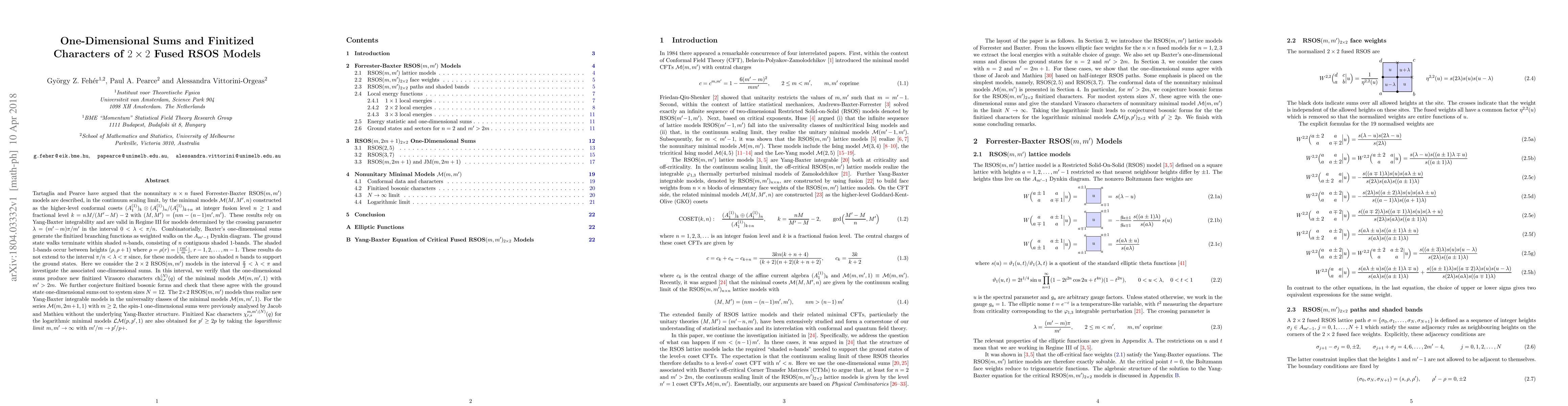 Tartaglia and Pearce have argued that the nonunitary $n\times n$ fused Forrester-Baxter $\mbox{RSOS}(m,m')$ models are described, in the continuum scaling limit, by the minimal models ${\cal M}(M,M',n)$ constructed as the higher-level conformal cosets $(A^{(1)}_1)_k\otimes (A^{(1)}_1)_n/(A^{(1)}_1)_{k+n}$ at integer fusion level $n\ge 1$ and fractional level $k=nM/(M'\!-\!M)-2$ with $(M,M')=\big(nm-(n\!-\!1)m',m'\big)$. These results rely on Yang-Baxter integrability and are valid in Regime III for models determined by the crossing parameter $\lambda=(m'\!-\!m)\pi/m'$ in the interval $0<\lambda<\pi/n$. Here we consider the $2\times 2$ $\mbox{RSOS}(m,m')$ models in the interval $\tfrac{\pi}{2}<\lambda<\pi$ and investigate the associated one-dimensional sums. In this interval, we verify that the one-dimensional sums produce new finitized Virasoro characters $ch_{r,s}^{(N)}(q)$ of the minimal models ${\cal M}(m,m',1)$ with $m'>2m$. We further conjecture finitized bosonic forms and check that these agree with the ground state one-dimensional sums out to system sizes $N=12$. The $2\times 2$ $\mbox{RSOS}(m,m')$ models thus realize new Yang-Baxter integrable models in the universality classes of the minimal models ${\cal M}(m,m',1)$. For the series ${\cal M}(m,2m+1,1)$ with $m\ge 2$, the spin-1 one-dimensional sums were previously analysed by Jacob and Mathieu without the underlying Yang-Baxter structure. Finitized Kac characters $\chi_{r,s}^{m,m';(N)}(q)$ for the logarithmic minimal models ${\cal LM}(p,p',1)$ are also obtained for $p'\ge 2p$ by taking the logarithmic limit $m,m'\to\infty$ with $m'/m\to p'/p+$.