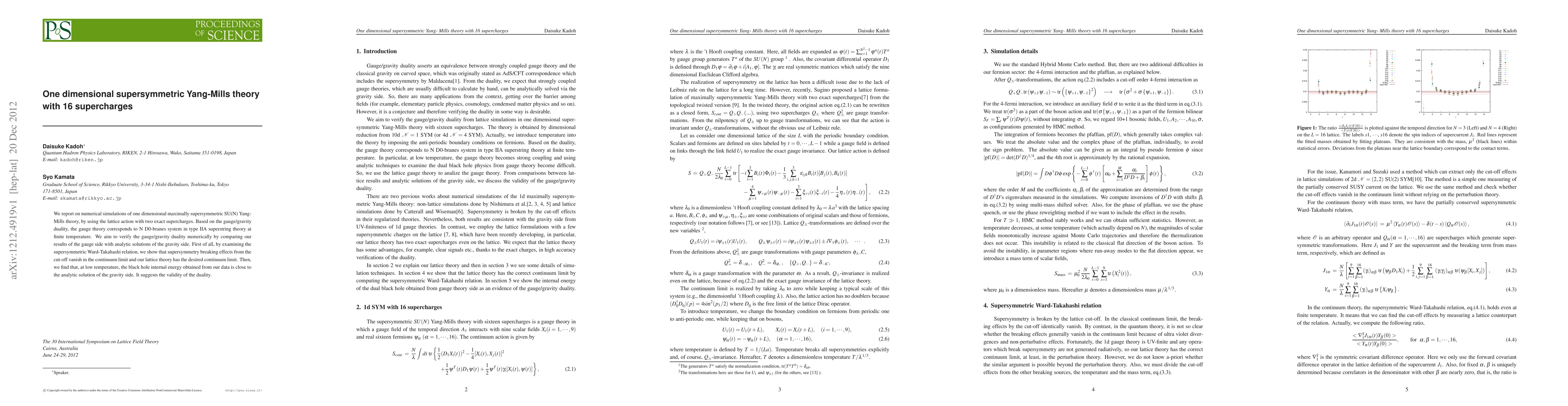 This paper reports on numerical simulations of one-dimensional maximally supersymmetric SU(N) Yang-Mills theory, demonstrating the gauge/gravity duality by verifying the correspondence between lattice gauge theory and analytic solutions from the gravity side, confirming the continuum limit and the validity of the duality at low temperatures.