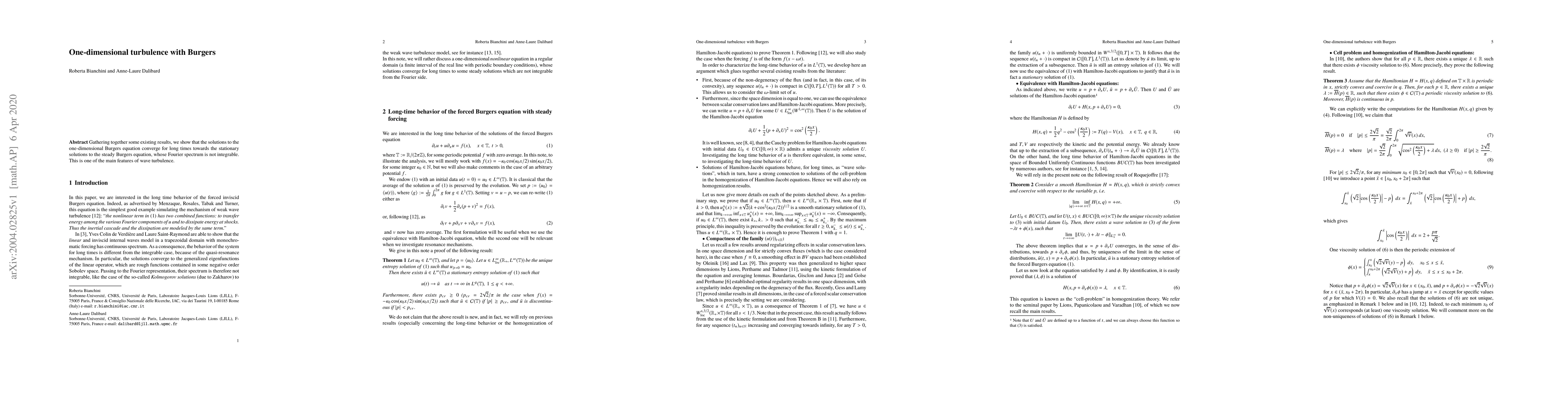 Summary: The study demonstrates that solutions to the one-dimensional Burgers equation evolve towards stationary solutions with a non-integrable Fourier spectrum, a key characteristic of wave turbulence. This convergence highlights the emergence of turbulence-like behavior in the system.