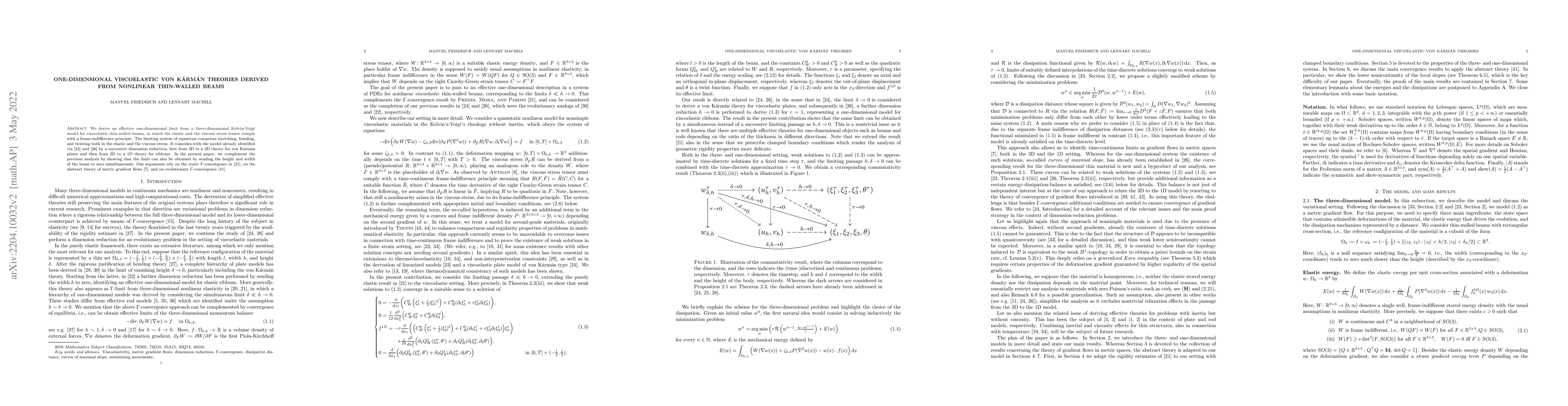 We derive an effective one-dimensional limit from a three-dimensional Kelvin-Voigt model for viscoelastic thin-walled beams, in which the elastic and the viscous stress tensor comply with a frame-indifference principle. The limiting system of equations comprises stretching, bending, and twisting both in the elastic and the viscous stress. It coincides with the model already identified via [Friedrich-Kru\v{z}\'ik '20] and [Friedrich-Machill '22] by a successive dimension reduction, first from 3D to a 2D theory for von K\'{a}rm\'{a}n plates and then from 2D to a 1D theory for ribbons. In the present paper, we complement the previous analysis by showing that the limit can also be obtained by sending the height and width of the beam to zero simultaneously. Our arguments rely on the static $\Gamma$-convergence in [Freddi-Mora-Paroni '13], on the abstract theory of metric gradient flows, and on evolutionary $\Gamma$-convergence by Sandier and Serfaty.
