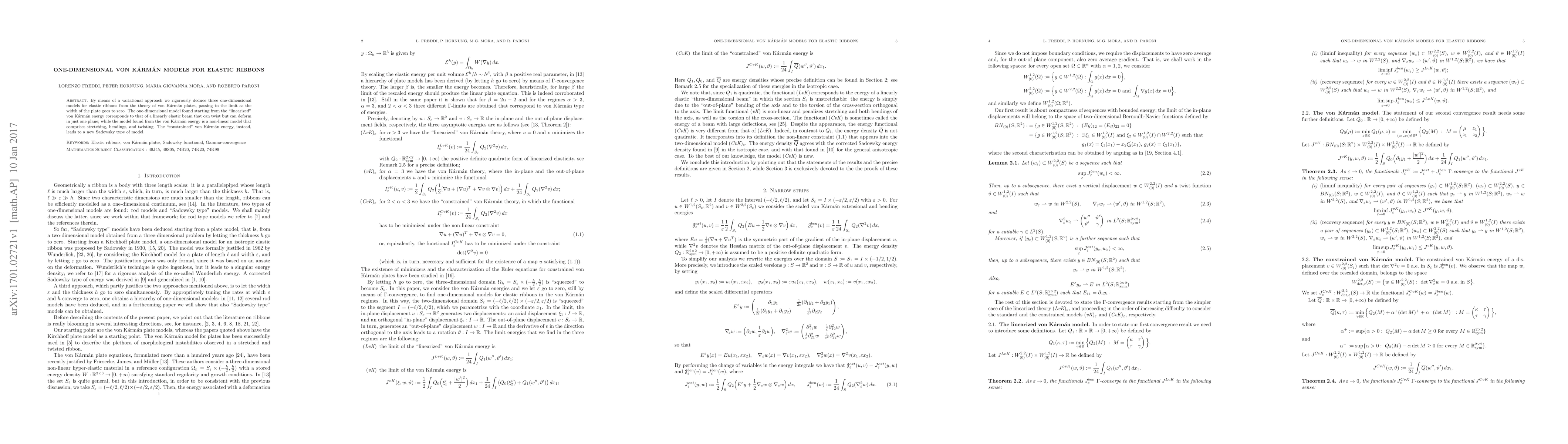 This paper derives three one-dimensional models for elastic ribbons from the theory of von Kármán plates, focusing on the limit as plate width approaches zero. The models include a linearly elastic beam model, a non-linear model encompassing stretching, bending, and twisting, and a new Sadowsky type model.